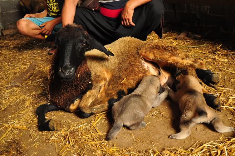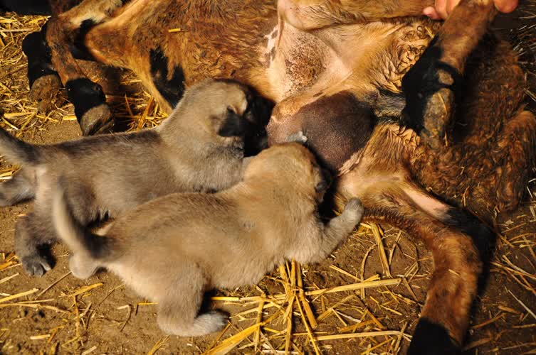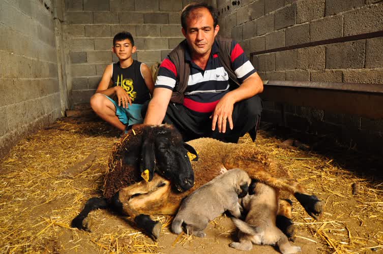 Kangal yavrularına koyun ‘annelik’ yapıyor Osmaniye’nin Sumbas ilçesinde annesi ölen kangal cinsi 2 köpeği emziren koyun, görenlerin ilgisini çekiyor. 110 210 310 410 510 610 710 810 910 1010