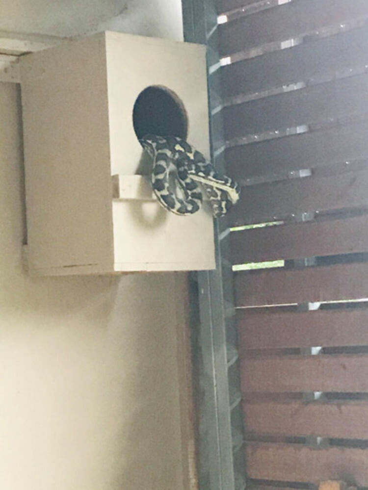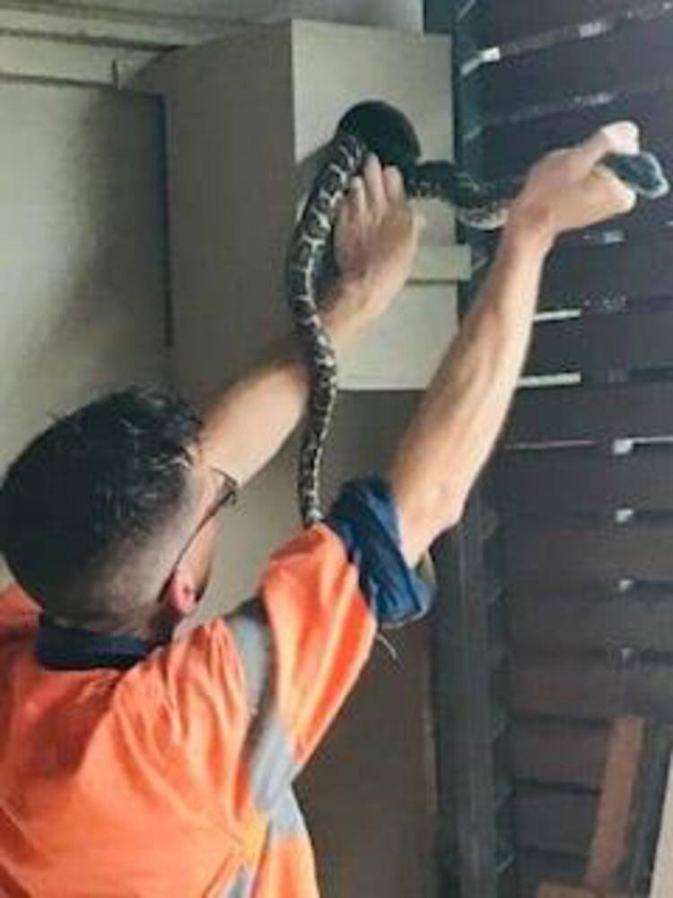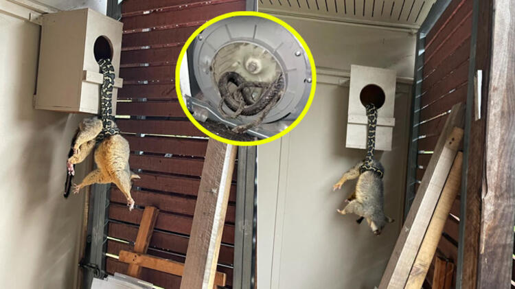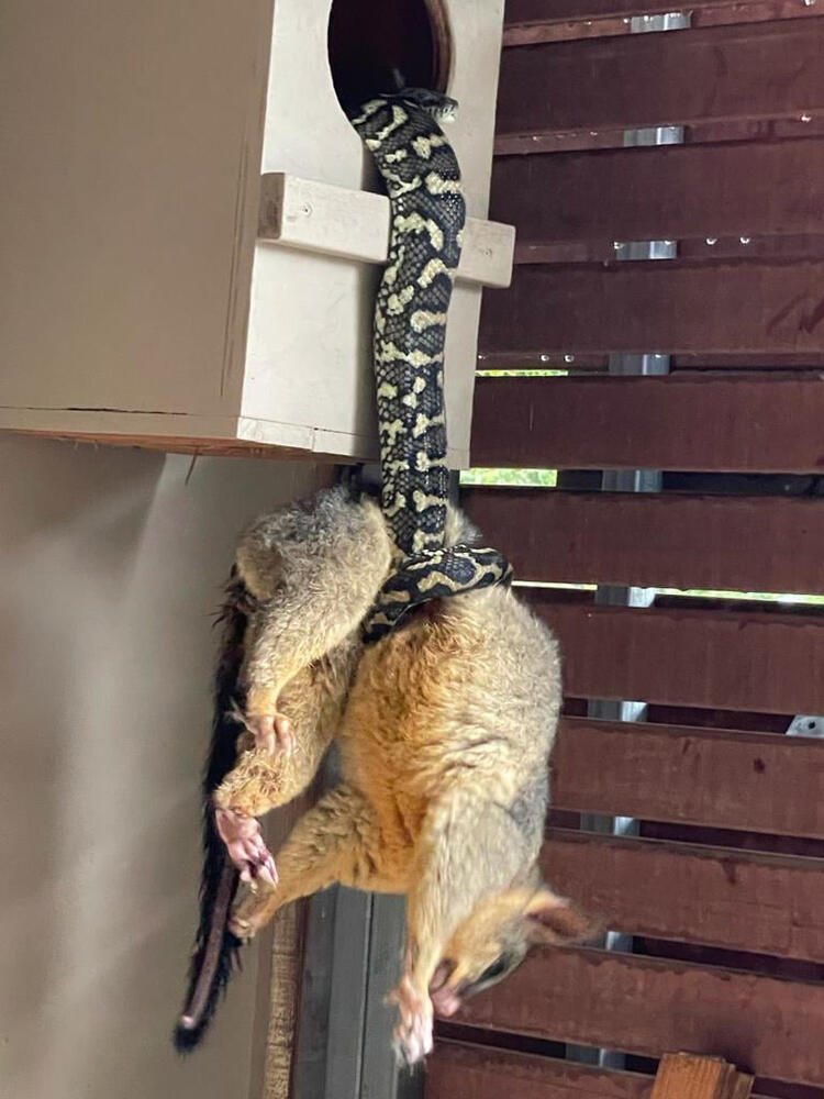 - Hayvanı sıkı sıkıya saran hali pitonu, Fegan’ın eve çağırdığı yılan avcıları tarafından folluktan indirildiğinde Reggie isimli Avustralya keseli sıçanı ölümden kurtardı.