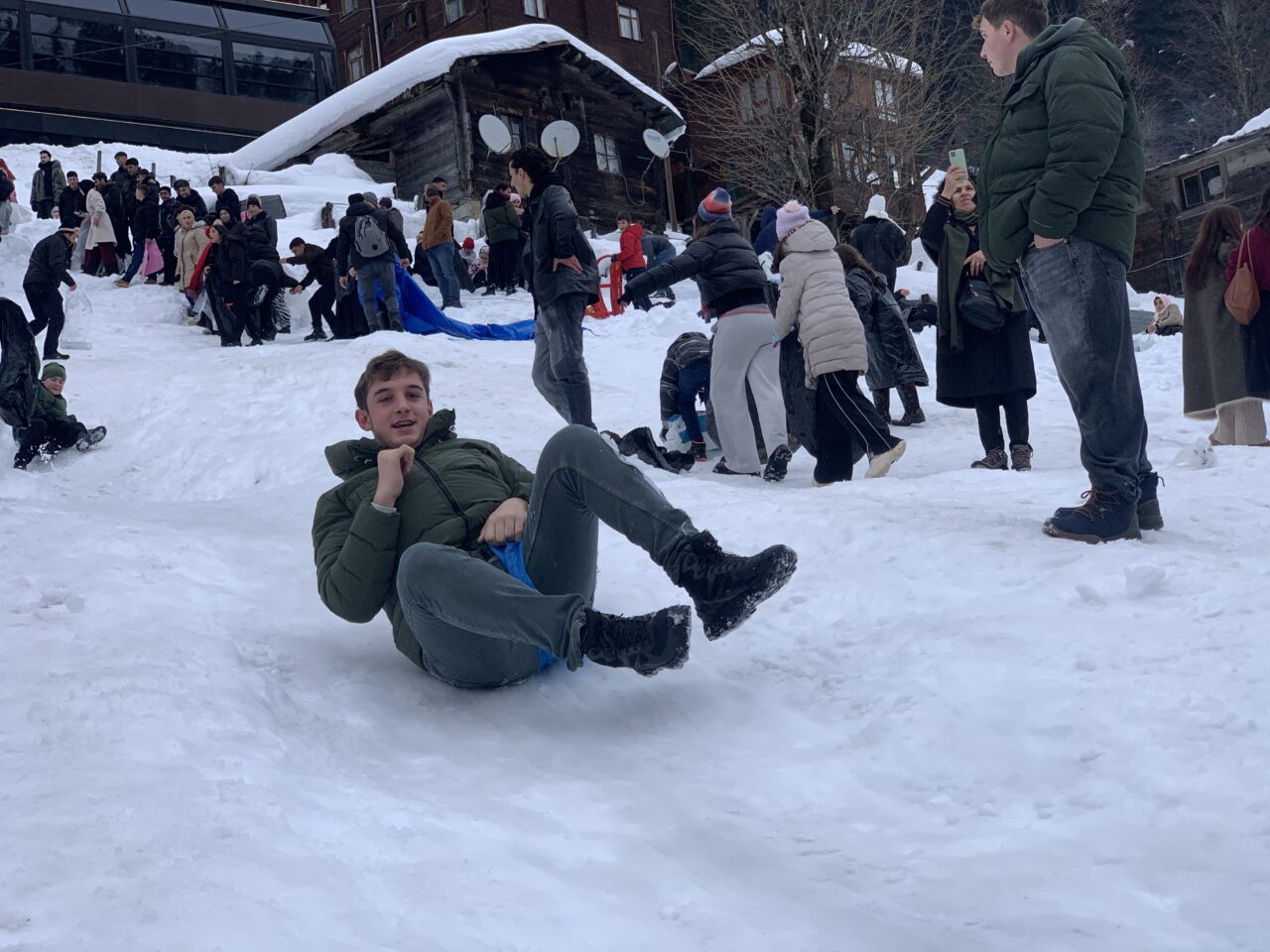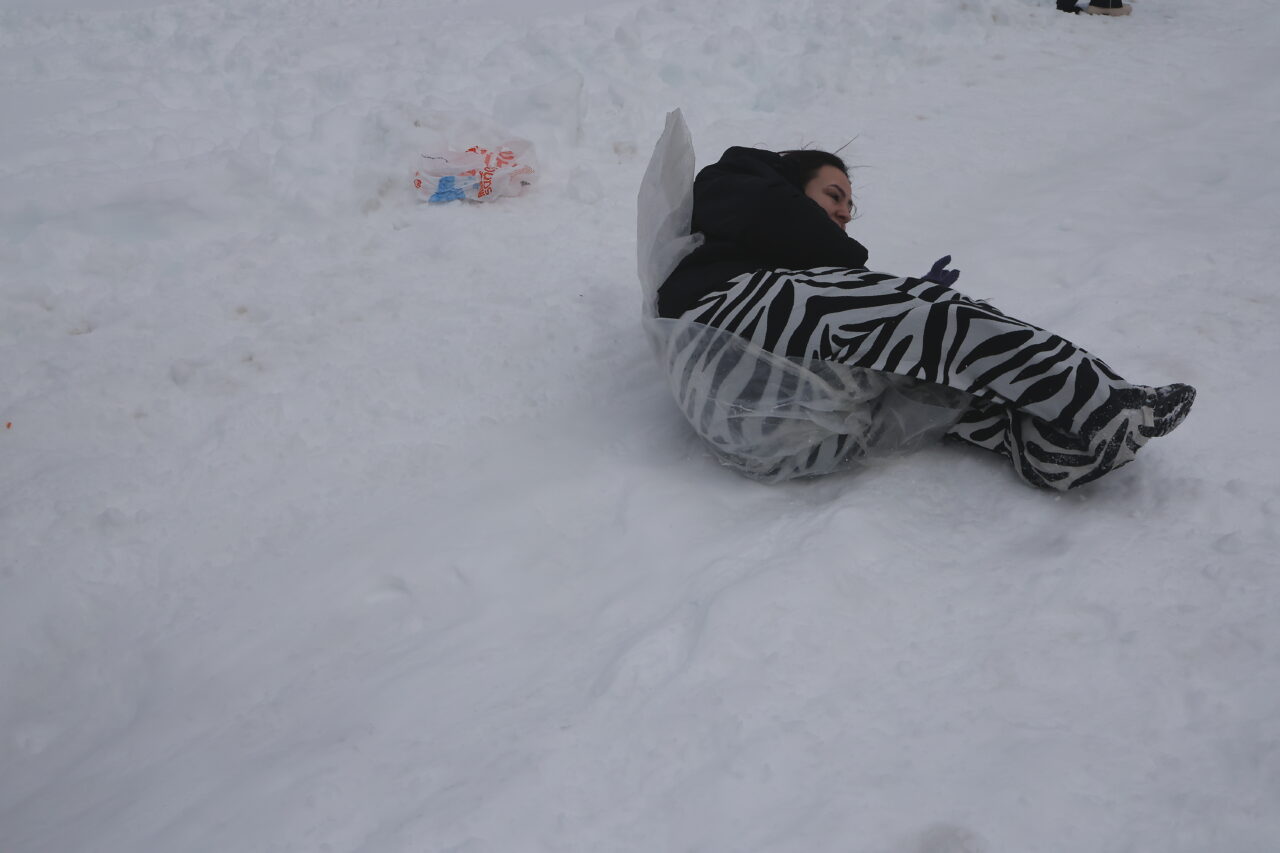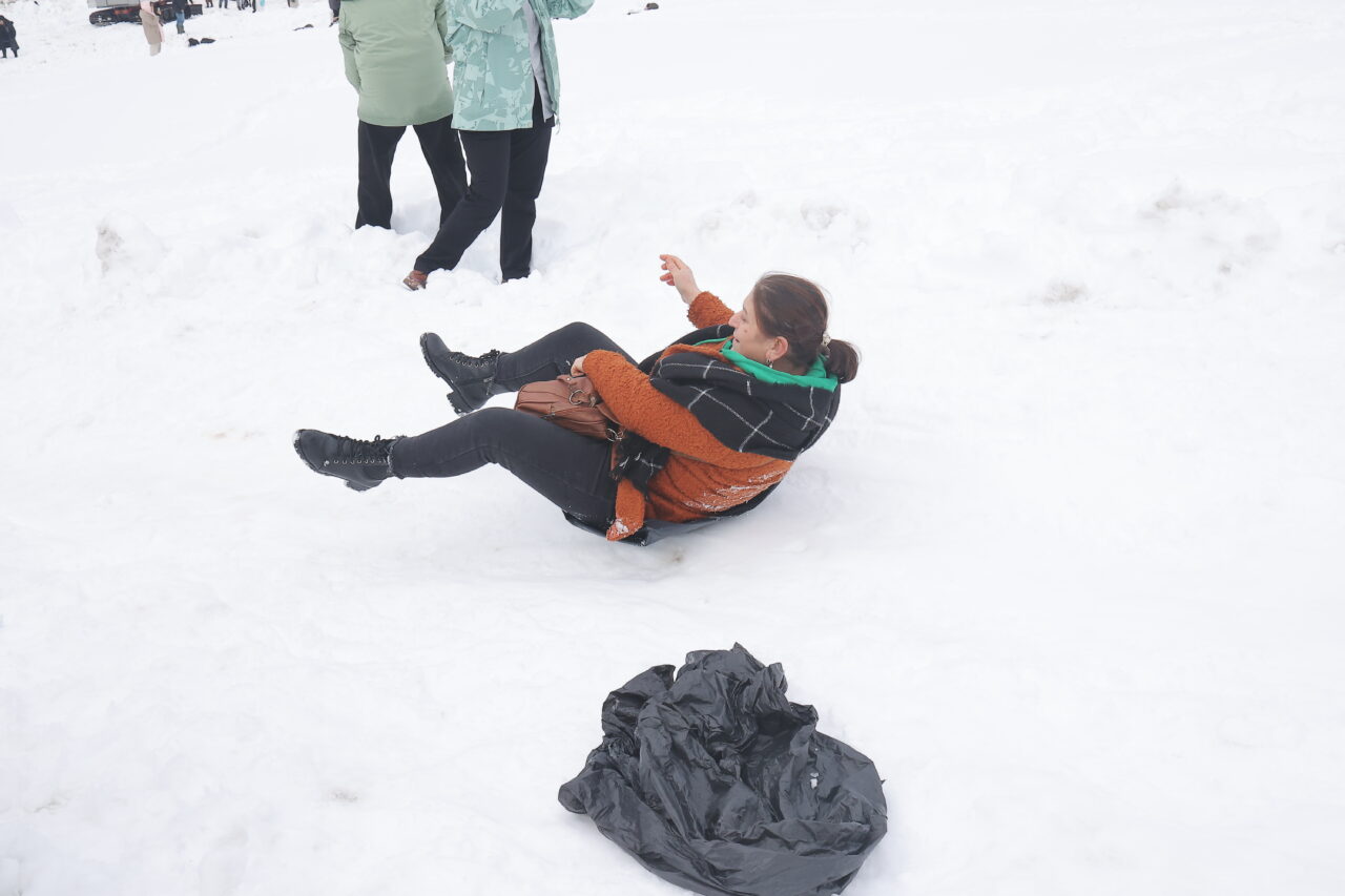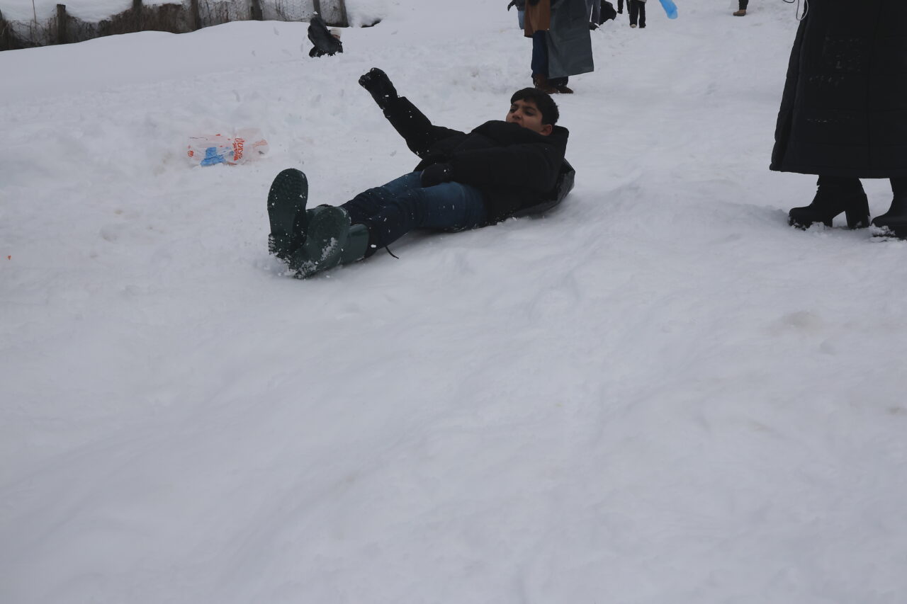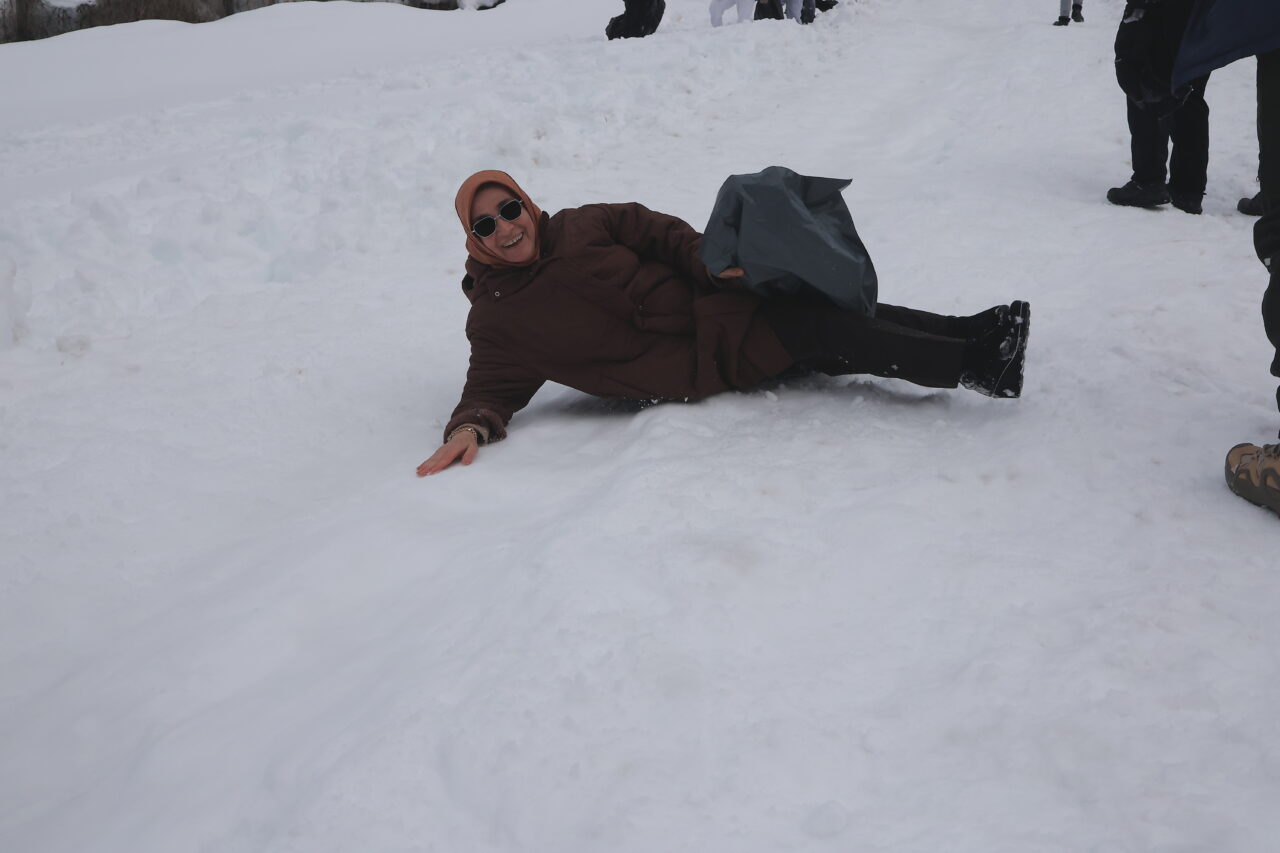 - Kardan eserlere büyük ilgi gösteren katılımcılar, ardından 75 metre uzunluğundaki doğal kayak pistinde poşetlerle kayarak eğlenceli anlar yaşadı.(DHA)