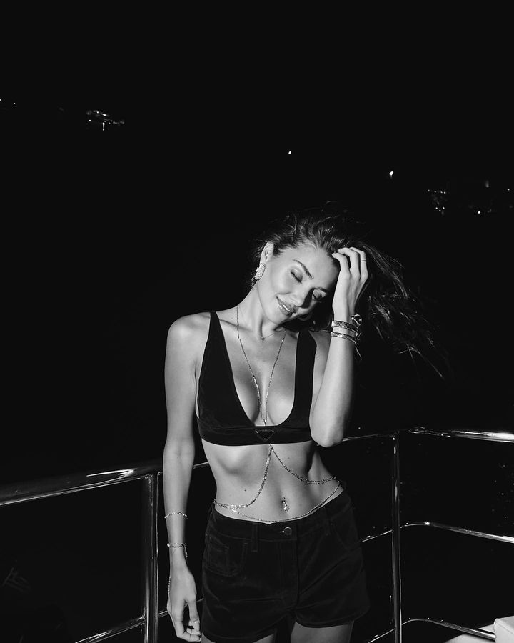 - Her paylaşımı ile olay olan Hande Erçel bu kez sütyenli karelerini takipçilerinin beğenisine sundu.