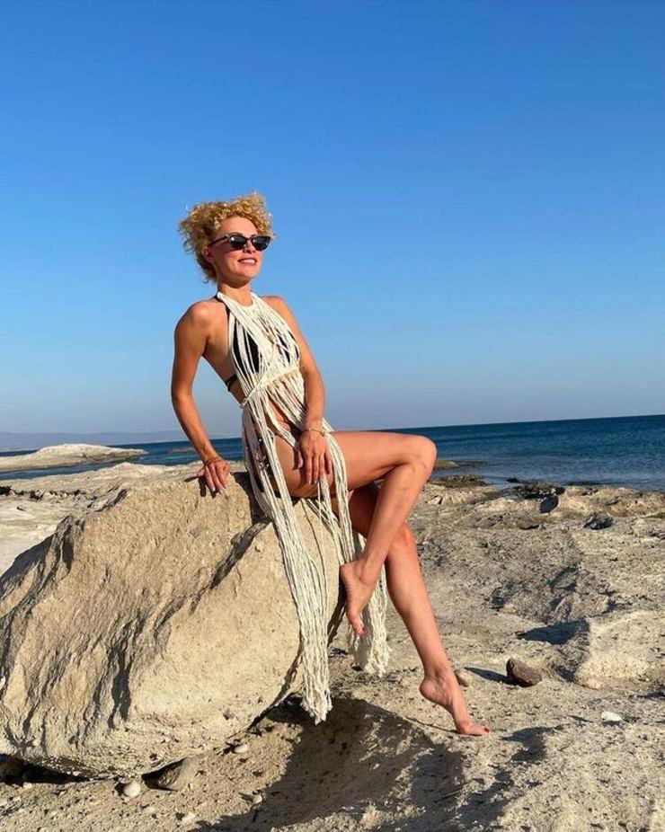 - Ünlü oyuncu, siyah bikinisi ve üzerine giydiği ipli elbisesi ile kayalığın üzerine çıkarak verdiği bir pozu Instagram sayfasında takipçilerinin beğenisine sundu.