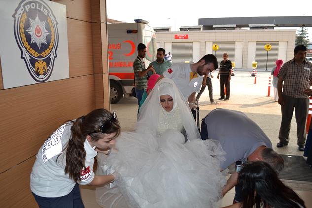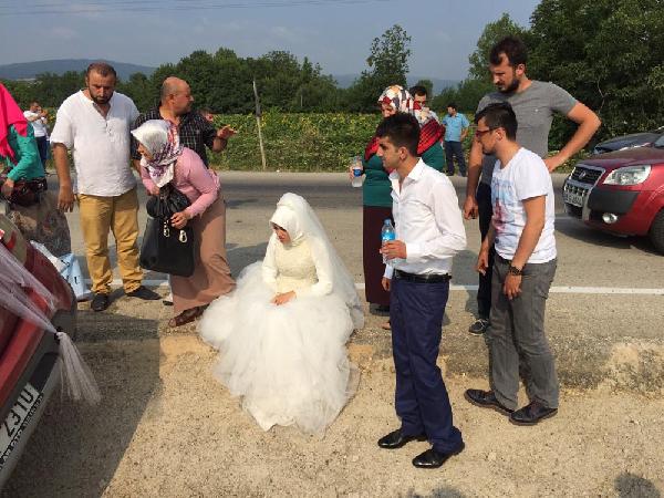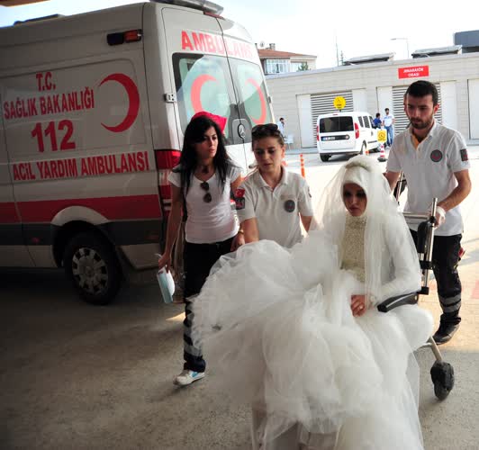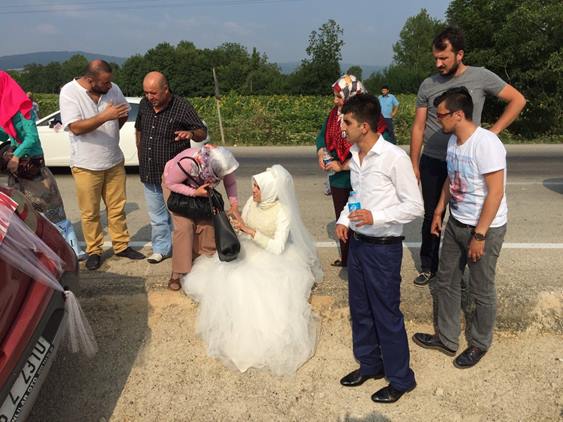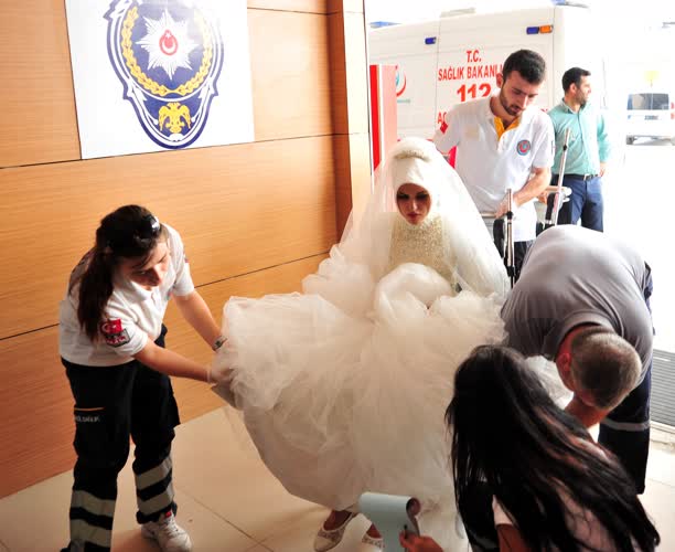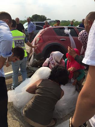 Kazaya rağmen düğünü ertelemediler Bursa-Ankara Karayolunda meydana gelen trafik kazasında hafif şekilde yaralanan gelin, hastanedeki tedavisinin ardından düğünün yapılacağı yere gitti. 112 212 312 412 512 612 712 812 912 1012 1112 1212