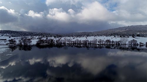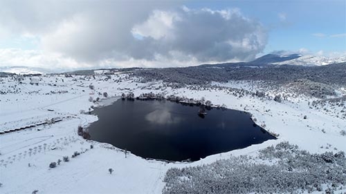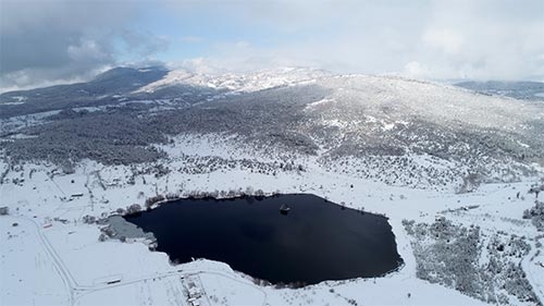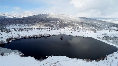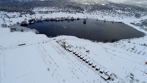 Uludağ’ın güney yamaçlarındaki Keles’e bağlı Gököz Göleti kışın da kendine hayran bırakıyor. Karla kaplanan Gököz Göleti drone ile havadan görüntülendi