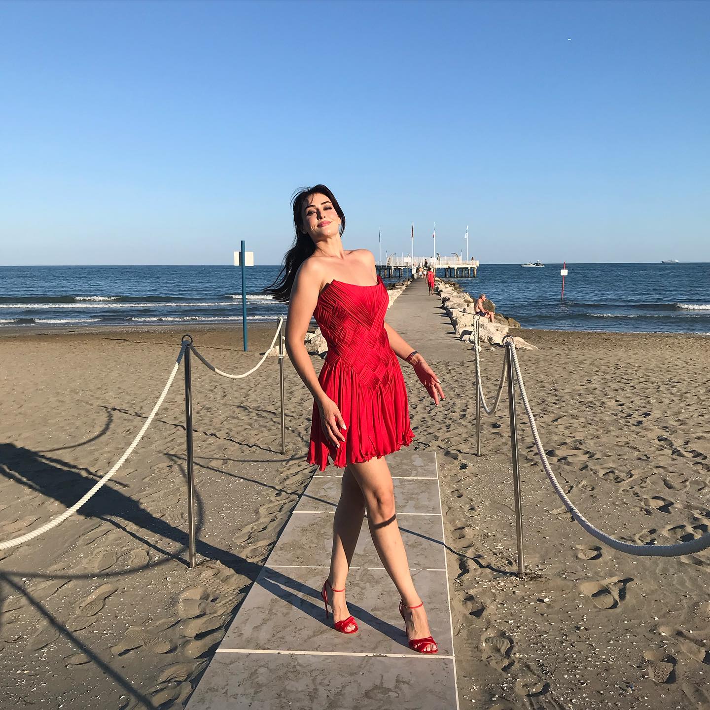 - Süper mini ve göğüs dekolteli kırmızı elbisesiyle dikkat çekti.