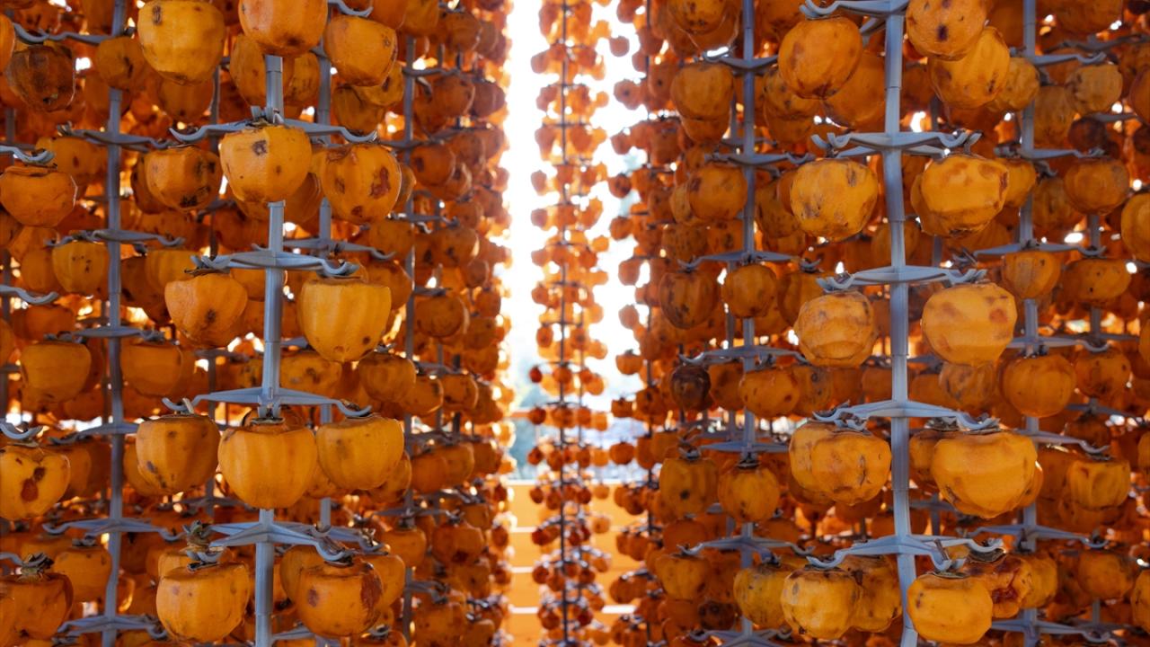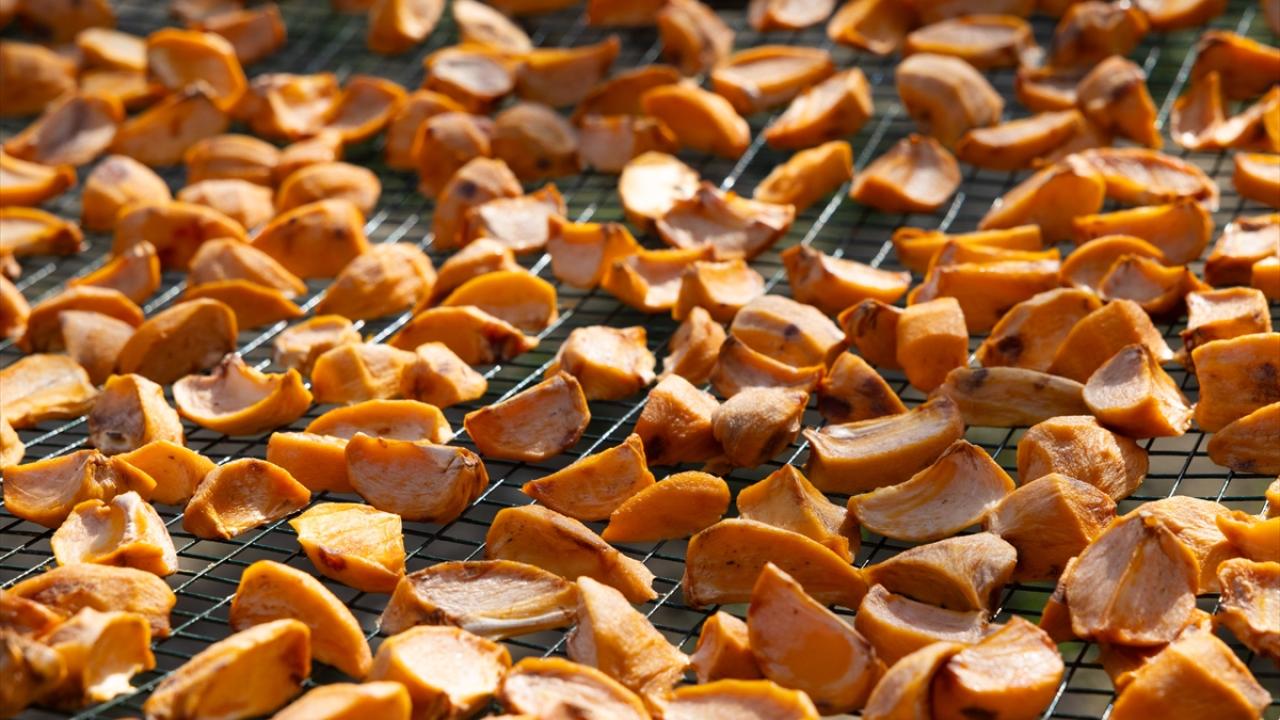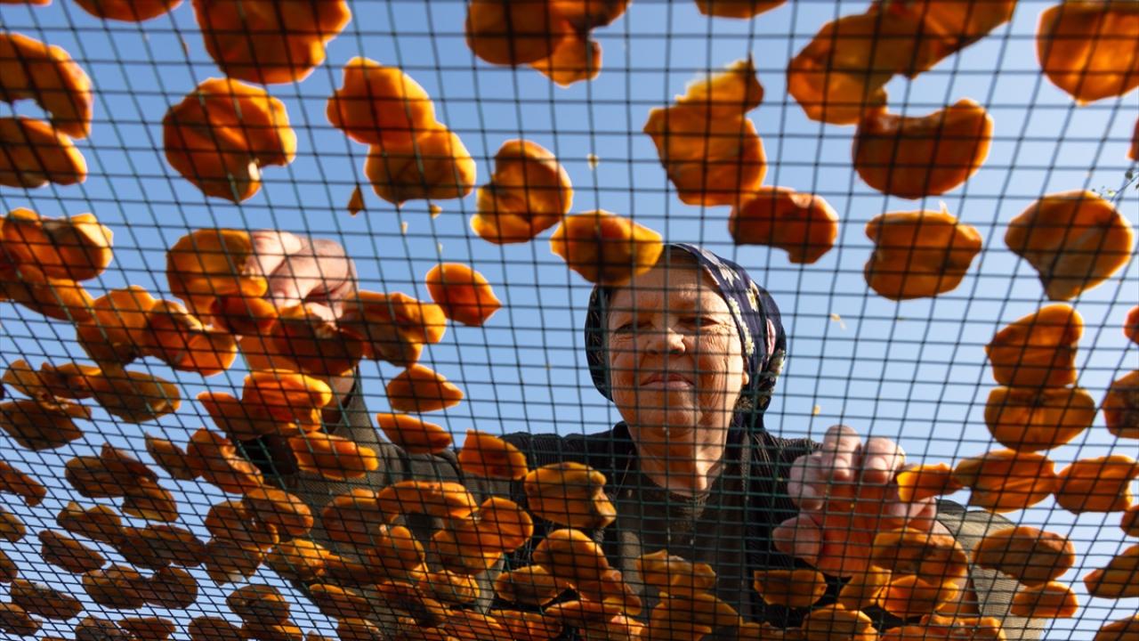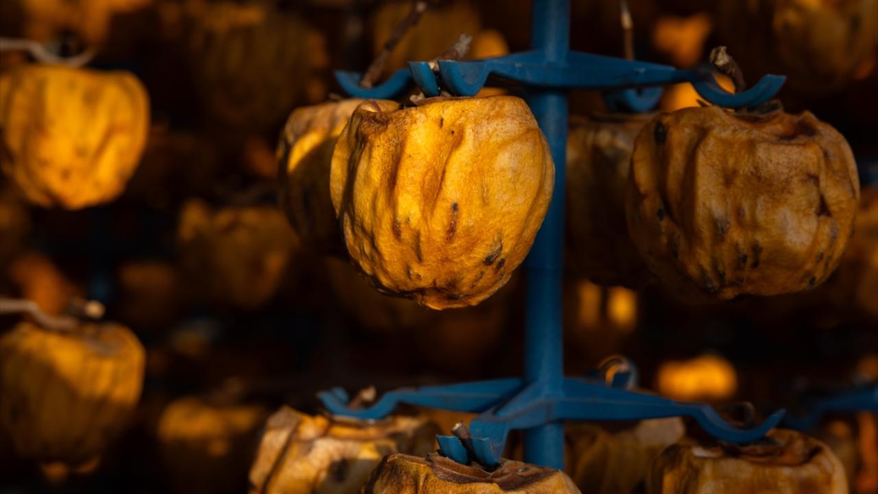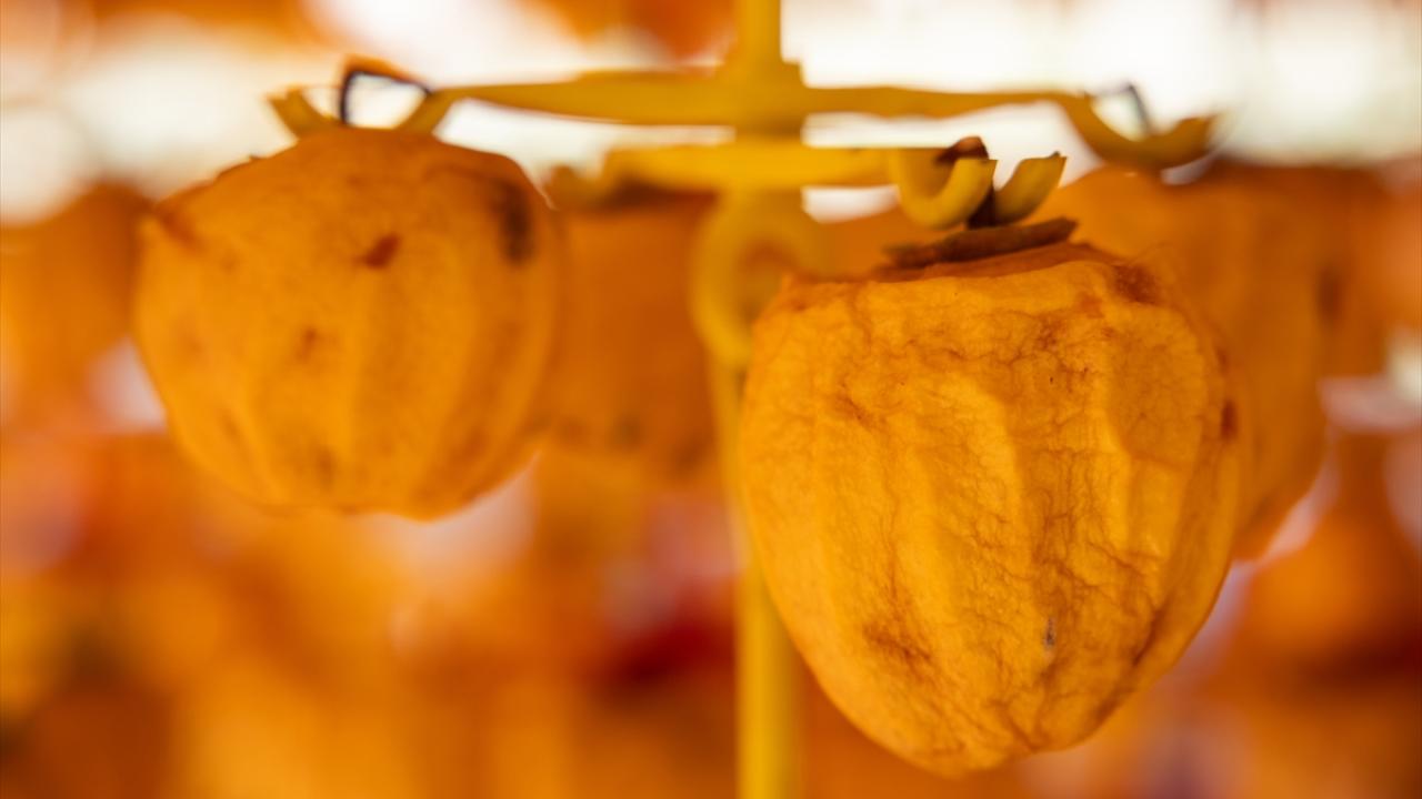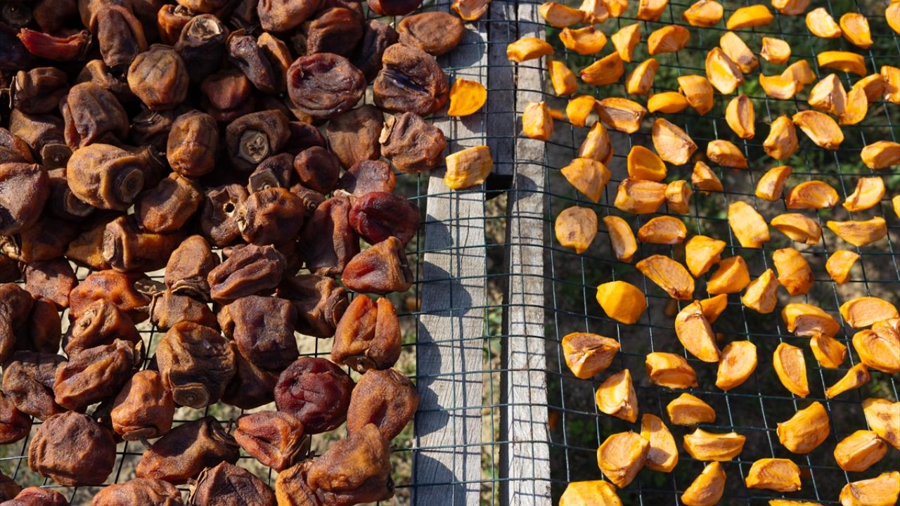- Bahçelerde ağaçlardan toplanan hurmalar, kurutma alanlarında önce soyuluyor ardından özenle iplere dizilerek tezgahlara ve evlerin damlarına asılarak doğal yöntemlerle kurutuluyor.(AA)