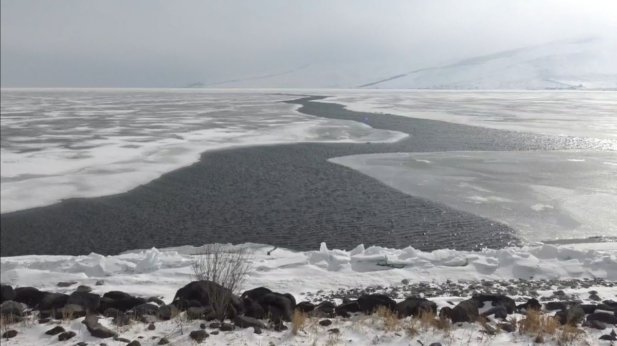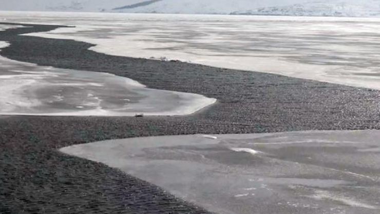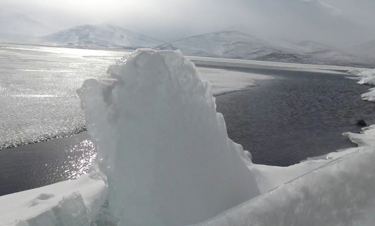 - Yaklaşık bir ay önce dondurucu soğukların etkisiyle yüzeyi 50 santimetre buz tutan Van’dan sonra Doğu Anadolu’nun ikinci büyük gölü Çıldır, bir haftadır hava sıcaklığının mevsim normallerinin üzerinde seyretmesi ve kuvvetli rüzgarların etkisiyle çözülmeye başladı. Buzların çözülmesi ile birlikte Çıldır Gölü’nde iki farklı manzara oluştu.