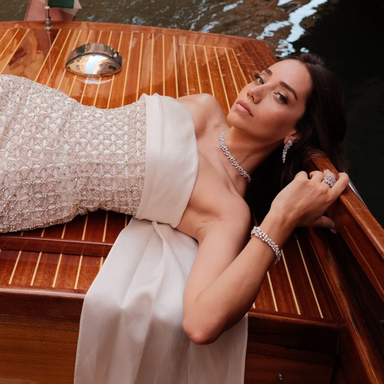 - Beyaz straplez, ışıltılı ve kuyruk detaylı elbisesiyle takipçilerinden tam not aldı.