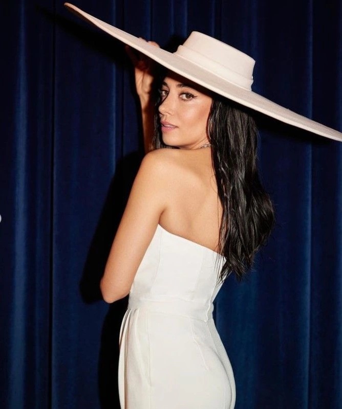 - Beyaz straplez tulum üzerine devasa bir şapka takan güzel oyuncu takipçilerinden tam not aldı.