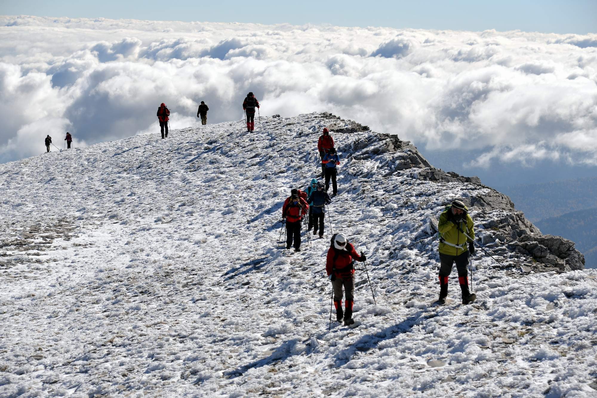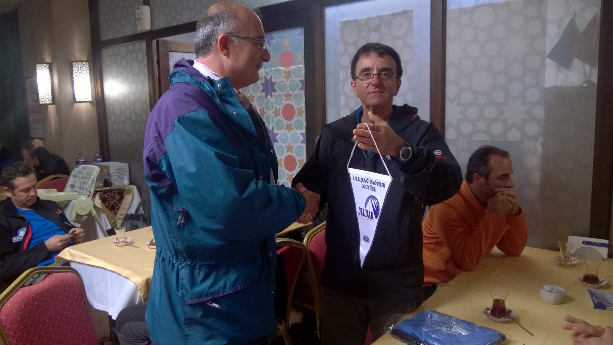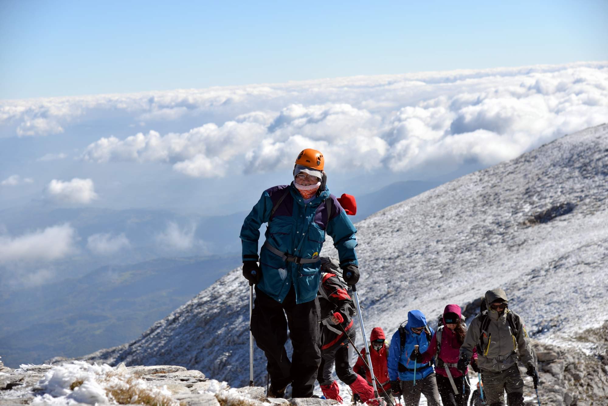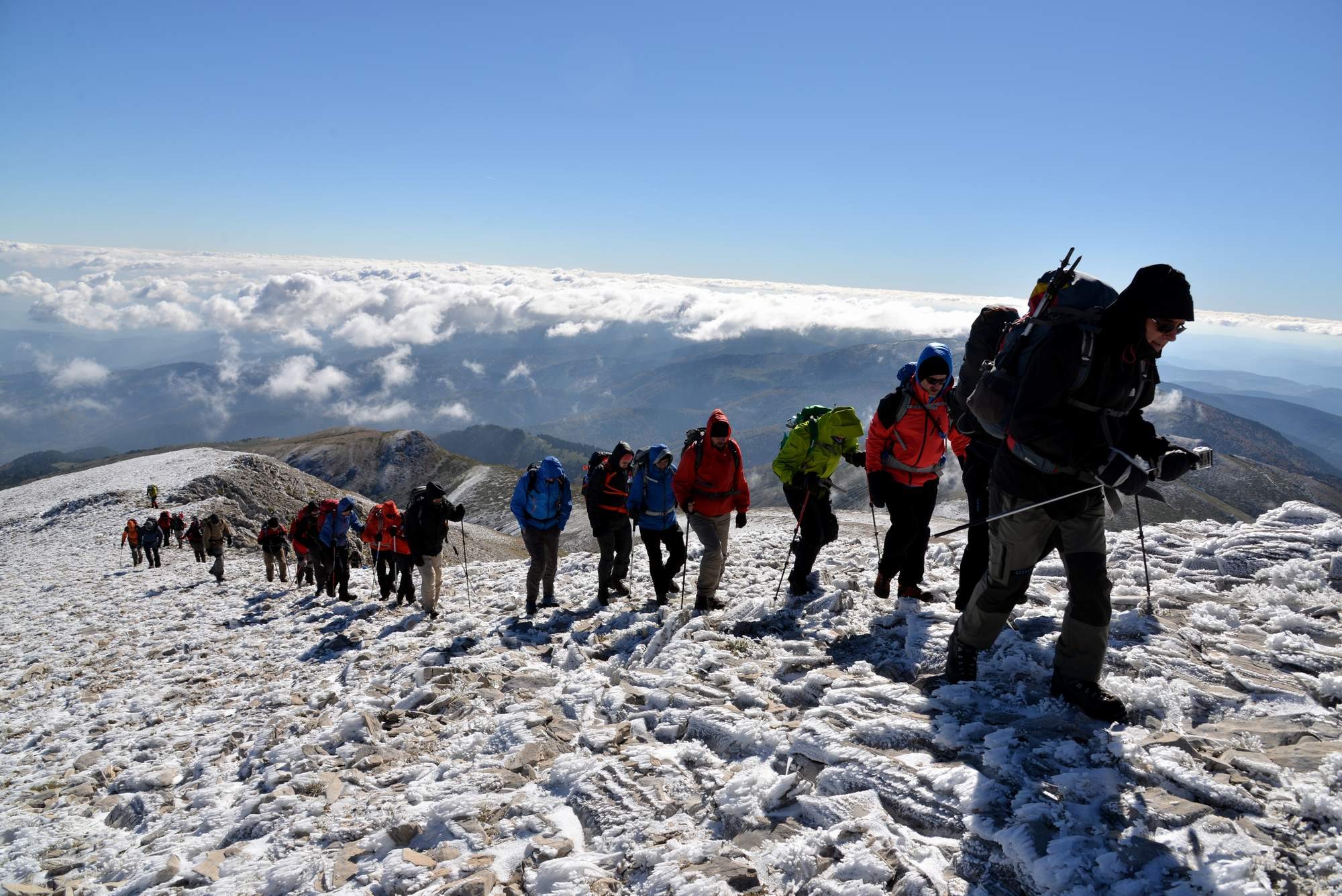 Bursa’da 40 dağcı Cumhuriyetin 92.yıldönümü sebebiyle karla kaplı Uludağ’ın zirvesine tırmandı. Dağcılar arasındaki Kayserili 54 yaşındaki Mustafa Kılıçarsan, koltuk değnekleriyle 39 arkadaşına 13 saat boyunca eşlik ederek, “işte azmin zaferi” dedirtti.