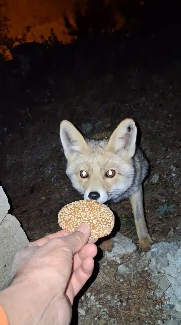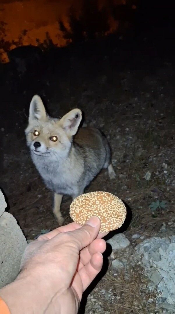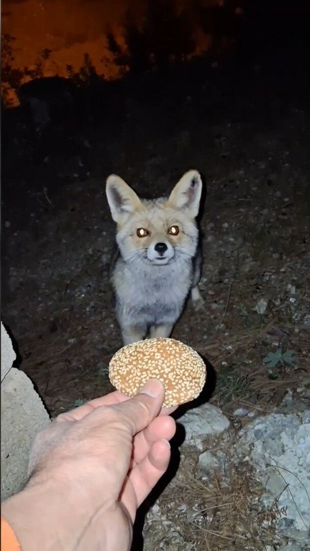 - Amanos Dağları eteklerindeki Zorkun Yaylası çarşı merkezinde fırın işletmeciliği yapan Murat Altun, gece saatlerinde dükkanının önüne bir tilkinin geldiğini fark etti.