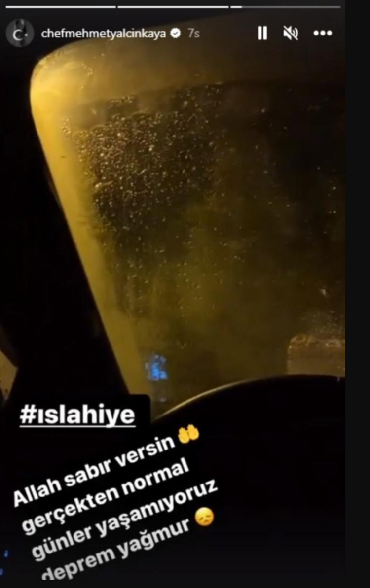 - Kentte yağmur başladığını söyleyen ünlü şef, “Allah sabır versin. Gerçekten normal günler yaşamıyoruz. Deprem, yağmur” ifadelerini kullandı.(Posta)