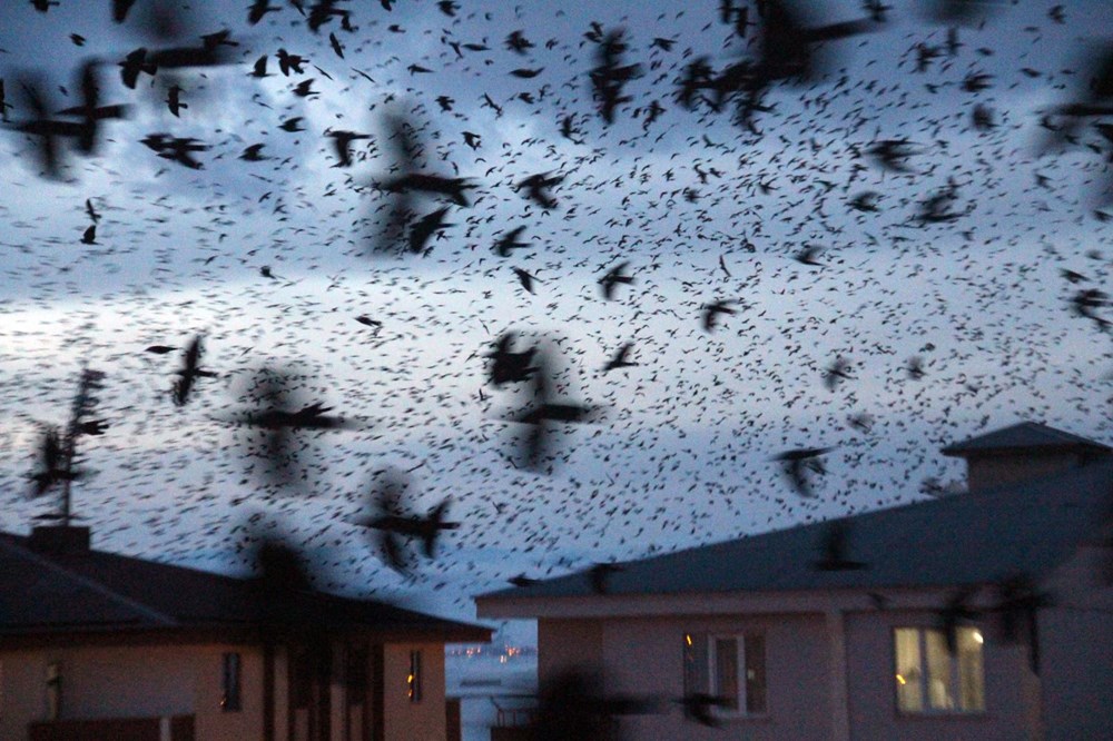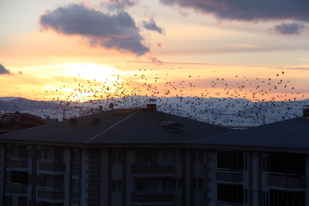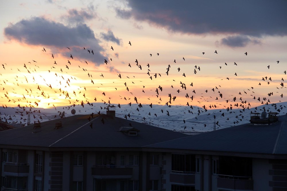 - Ağaçların ve binaların tepesi ise kuşlardan görülmez hale geliyor. Güneşin battığı anlarda ortaya çıkan binlerce karganın birlikte uçtuğu anlar, ilginç görüntüler oluşturuyor.