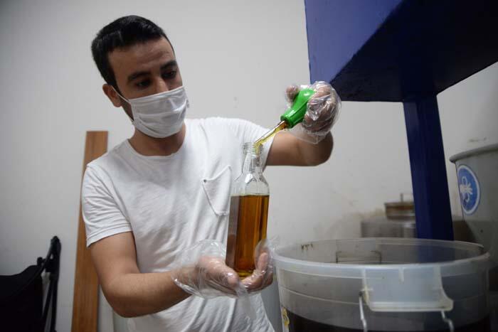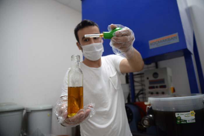 - Çörek otunu makinede işlediklerini belirten Dik, “Makinede işleyip çıkarttığımız yağı dinlenmeye bırakıyoruz. Tortu aşağıya çöktüğünde üstte kalan saf yağı alıp şişeliyoruz.
