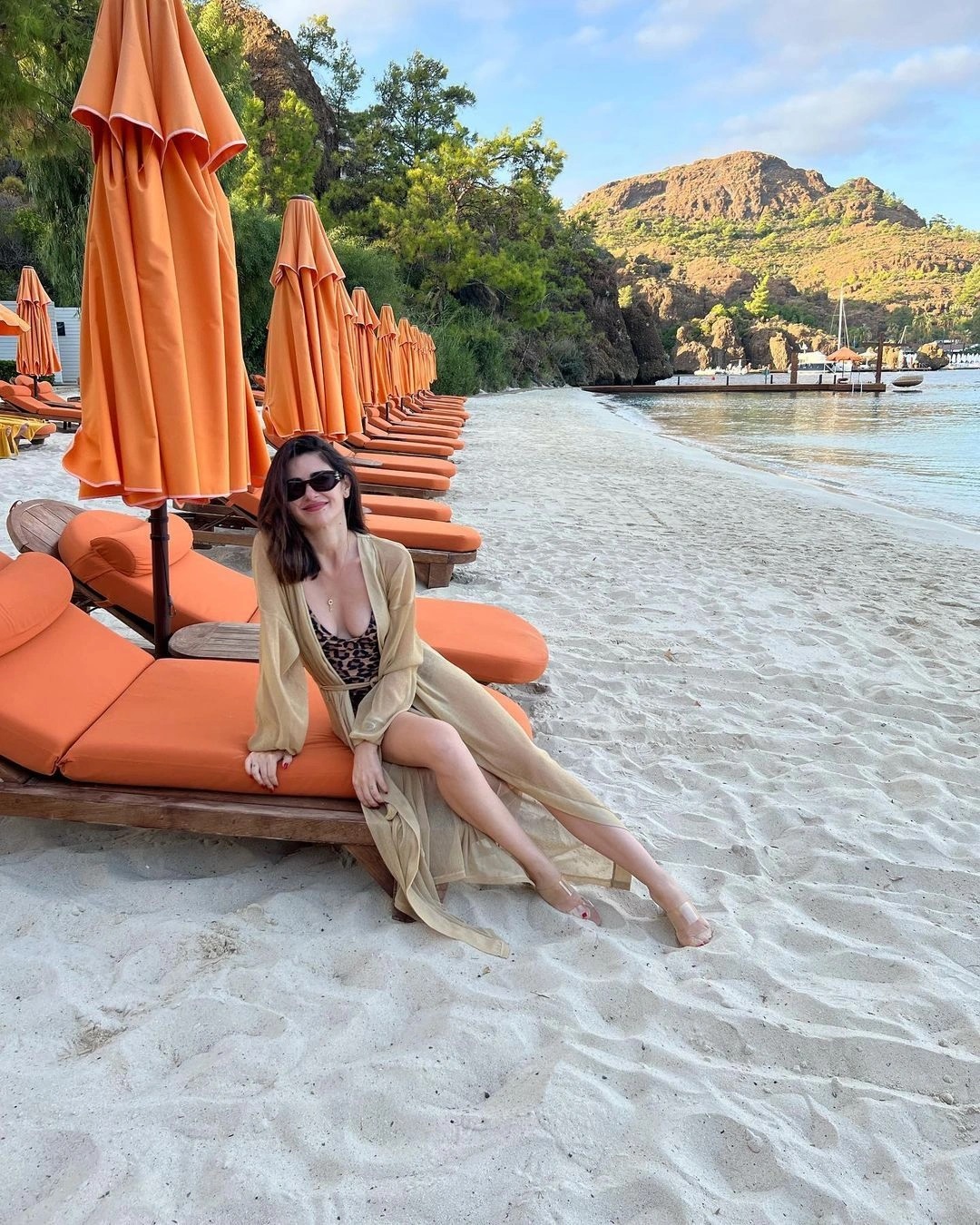 - Güzel oyuncu paylaştığı mayolu pozlarının altına “Plaj yine çok kalabalık” şeklinde yazdı.
