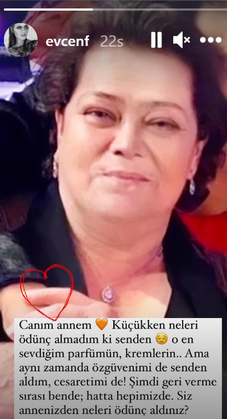 - Annesi Hatime Evcen’i paylaşan Fahriye Evcen ‘Canım annem. Küçükken nelerini ödünç almadım ki senden. O en sevdiğin parfümün, kremlerin… Ama aynı zamanda özgüvenimi de senden aldım, cesaretimi de!’ notu ekledi.