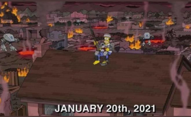 - ABD’de “iç savaş 2021” etketiyle atılan tweet’lerde, Simpsonlar dizisinde 20 Ocak 2021’de Homer Simpson’ın bir evin çatısında elinde silahla beklediği hali paylaşıldı. 20 Ocak ayrıca Trump’ın başkanlığı Joe Biden’a teslim edeceği gün.