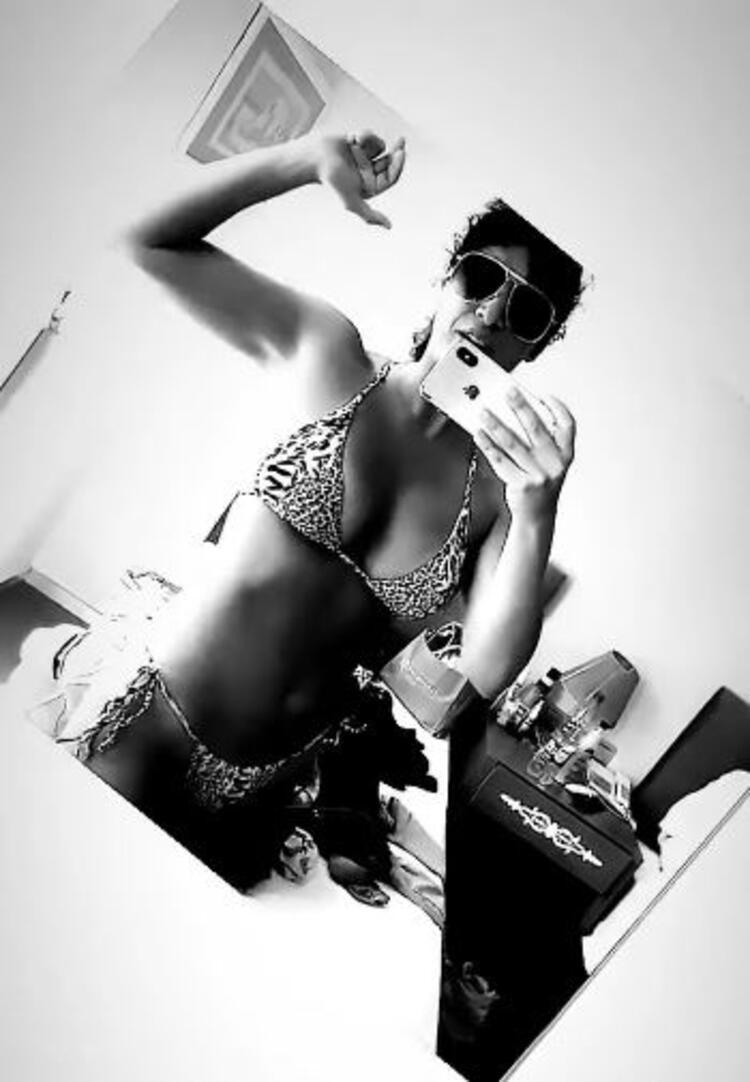 - Çıplak vücuduna sadece havlu sarıp objektif karşısına geçen Ekinci, bu sefer de mini leopar bikinisiyle ayna pozunu paylaştı.