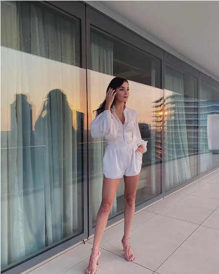 - Güzel oyuncu bu kez de beyaz, mini ve göğüs dekolteli trikosuyla adeta şov yaptı.
