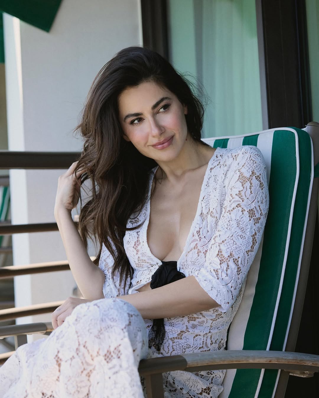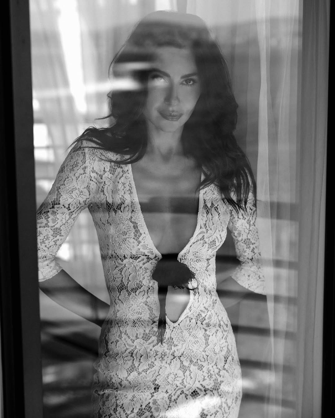 - Dekolteli baştan aşağıya dantelli elbisesiyle büyüledi.
