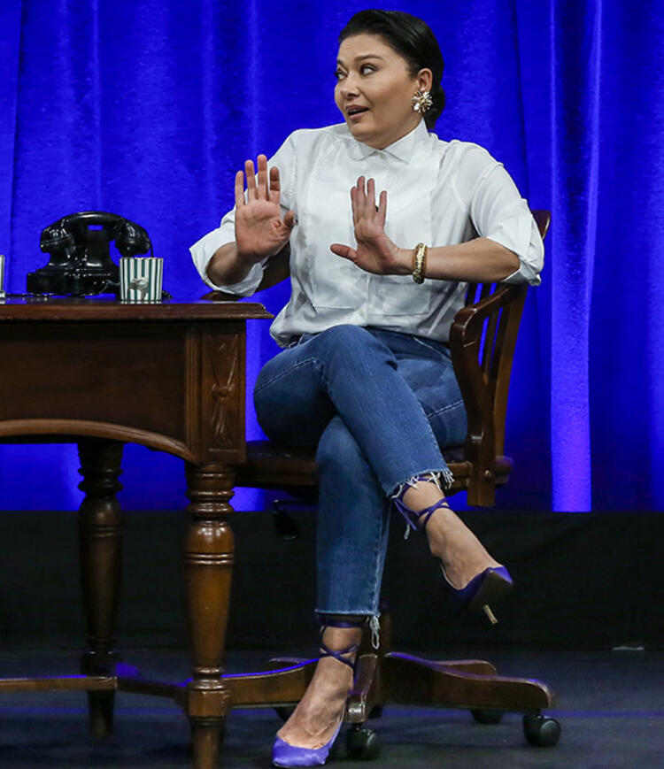 - Ailesinin oyuncu olmasını istemediğini anlatan 45 yaşındaki Yeşilçay, “Ailem oyuncu olmamı istemiyordu, aç kalacağımı düşünüyorlardı. Ne olursa olsun kolunda bir altın bilezik olsun motivasyonları bizim gençlik zamanlarımızda daha da yaygındı ailelerde. Evden kaçtım ben de. Beş parasız bir şekilde geçtim bütün süreçlerden. İstanbul’un büyüklüğü beni korkuttuğu için de bilerek İstanbul’a gelmeyi erteledim. İlk geldiğimde Beyoğlu’na çıkmıştım, İzmir’den sonra çok hızlı ve kalabalık gelmişti bana, hiç unutmuyorum. Herkes birbirine çarpıyor ve kimse özür dilemiyordu birbirinden” sözleriyle herkesi güldürdü.