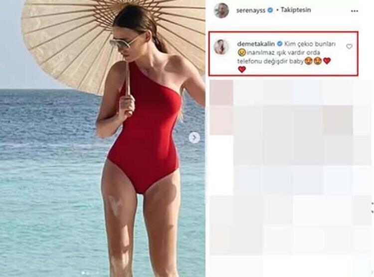 - “KİM ÇEKİYOR BUNLARI?” Demet Akalın, güzel oyuncunun hayranlarının övgüler yağdırdığı fotoğraflarına ilginç bir yorum yapmıştı. Şarkıcı, “Kim çekiyor bunları? İnanılmaz ışık vardır orada telefonu değiştir baby” demişti.