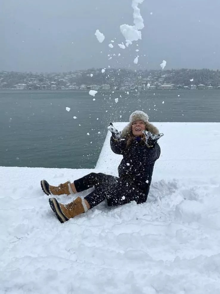 - İstanbul’da etkili olan kar yağışını fırsata çeviren oyuncu Bade İşçil, soluğu sahilde aldı. Oğlu Azur ile birlikte sahil hattında yürüyüş yapıp kartopu oynayan İşcil’in eğlenceli anları kameralara yansıdı.