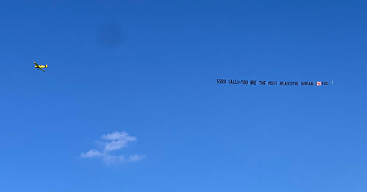 - Modelin, sürpriz karşısında duygulanarak, gözyaşlarına hakim olamadığı öğrenildi. Yaklaşık bir saat havada kalan uçağı görenler sosyal medya hesaplarından bu anı paylaştı.