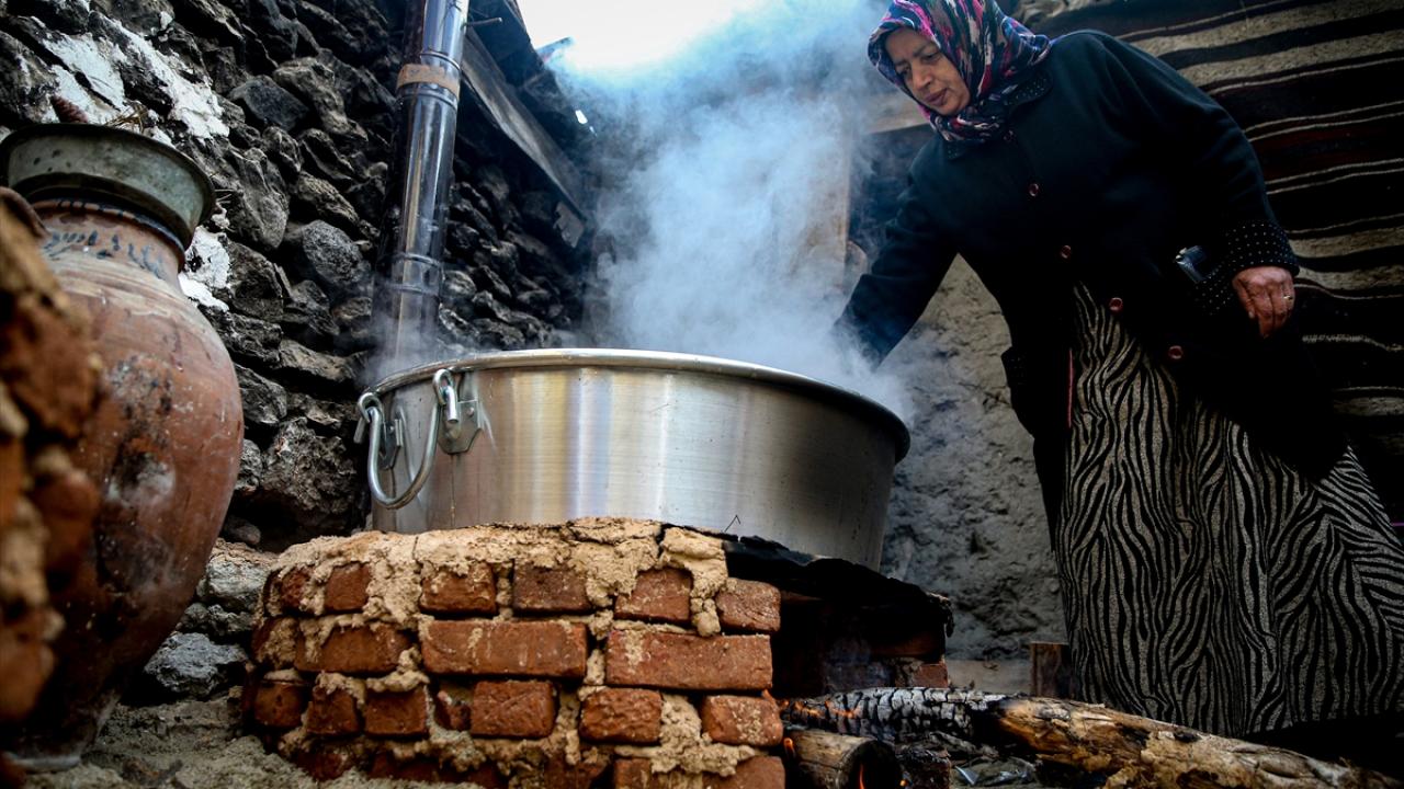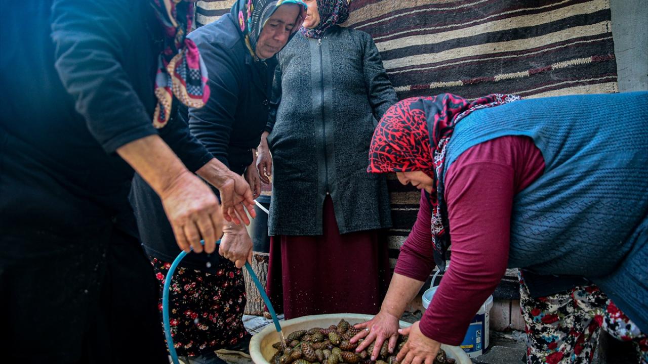 - Evinin bahçesinde diğer kadınlarla kozalak pekmezi üreten Kadriye Bulanık da proje kapsamında aldıkları destekle çam kozalağından pekmez yaptıklarını söyledi. Kozalakları eşlerinin toplayıp getirdiğini anlatan Bulanık, “Burada güzelce yıkayıp temizliyoruz. Bir gün önceden kozalakları kaynatıyoruz. Ertesi gün onu süzüyoruz. Ardından şeker ilave edip kaynatıyoruz, sonra şişelere koyup hazır hale getiriyoruz.” dedi.