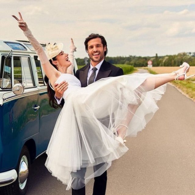 - Ünlü çift, gelinlik ve damatlıkla çekilen yeni fotoğraflarını sosyal medya hesaplarından paylaştı.