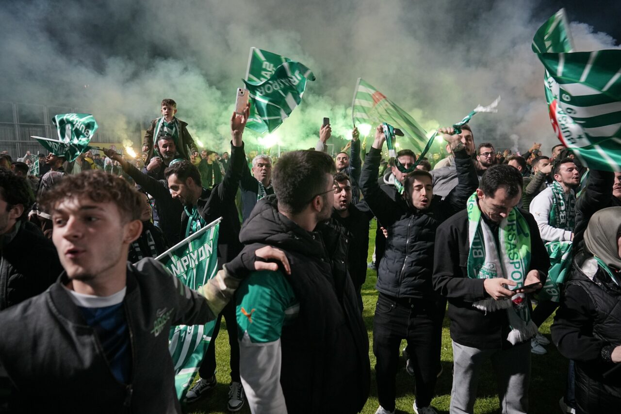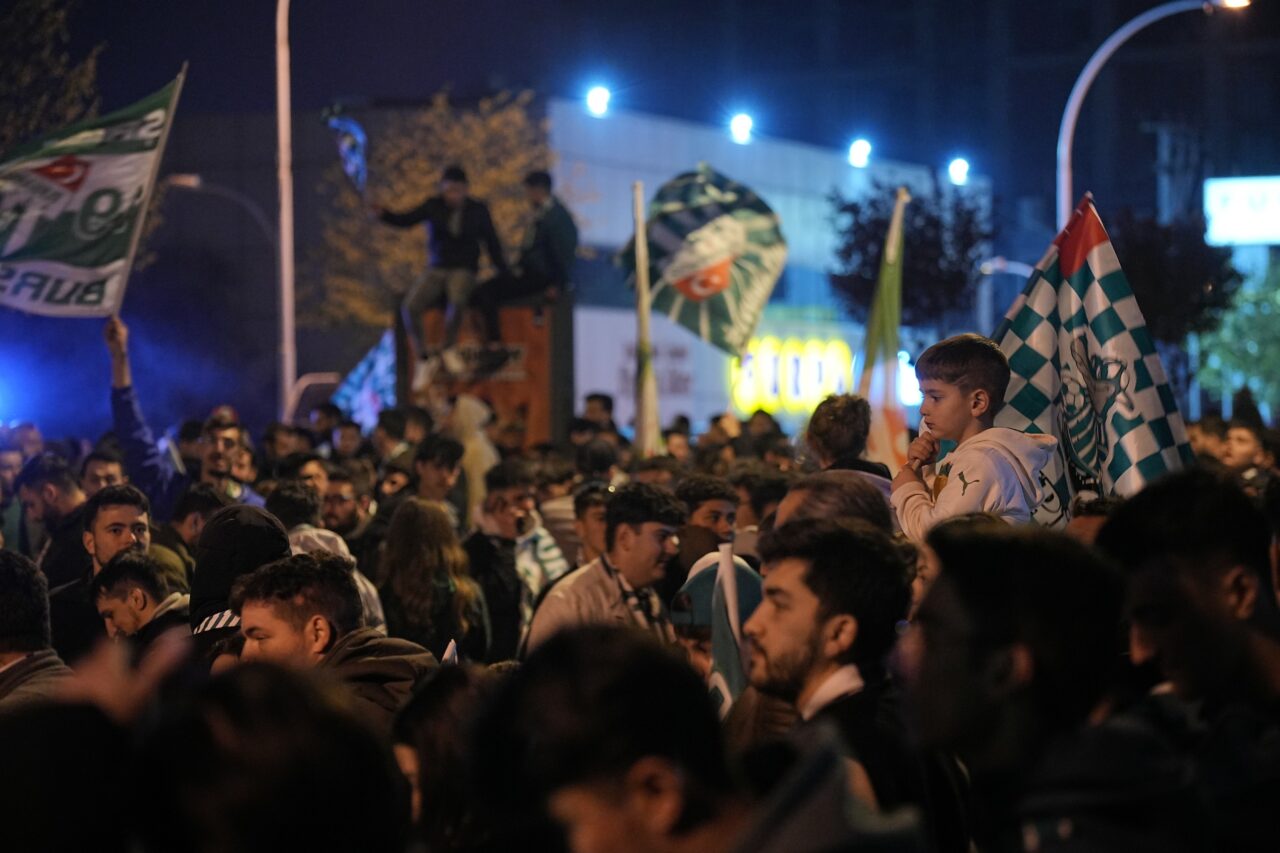 Bursaspor’un şampiyonluğu şehirde bayram havası yarattı. Şampiyon kafileyi Özlüce İbrahim Yazıcı Tesisleri’nde meşalelerle karşılayan yeşil beyazlı taraftar renkli görüntüler oluşturdu. İşte unutulmaz geceden öne çıkan fotoğraflar…