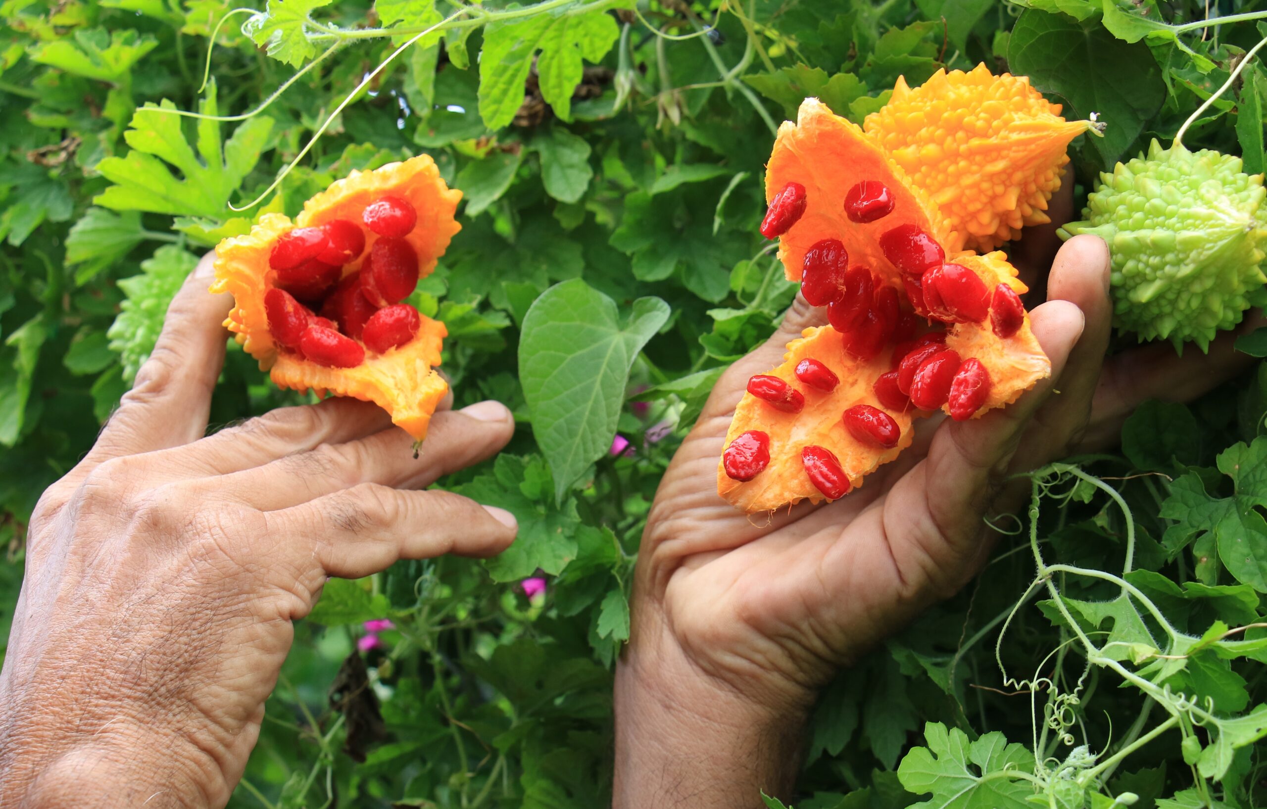 - Türkiye’de “kudret narı” (momordica charantia) olarak bilinen tropikal meyvenin bahçesinde kendiliğinden çıkıp ürün vermesiyle yetiştiriciliğine başlayan Mersinli çiftçi, haftada 100 kilogram hasat yaparak, tanesini 10 TL’den satıp ciddi bir kazanç sağlıyor. Erdemli ilçesi Yüksek Mahallesi’nde ikamet eden 3 çocuk babası Nazif Seyran, yıllarca örtü altına 2 dönümlük arazisinde sebze yetiştirerek geçimini sağladı.
