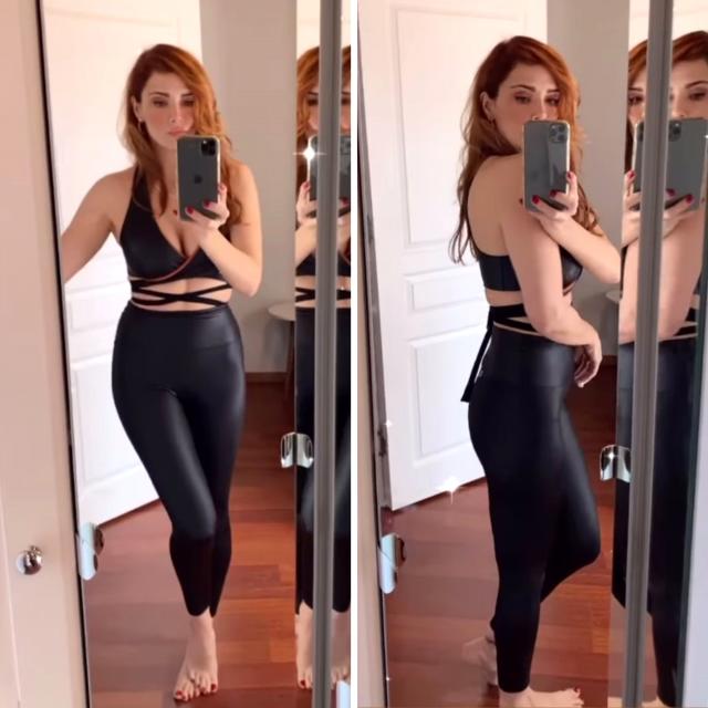 - Göğüs dekolteli siyah spor elbisesiyle ayna karşısında poz veren Mine Tugay’ın paylaşımına adeta beğeni yağdı.