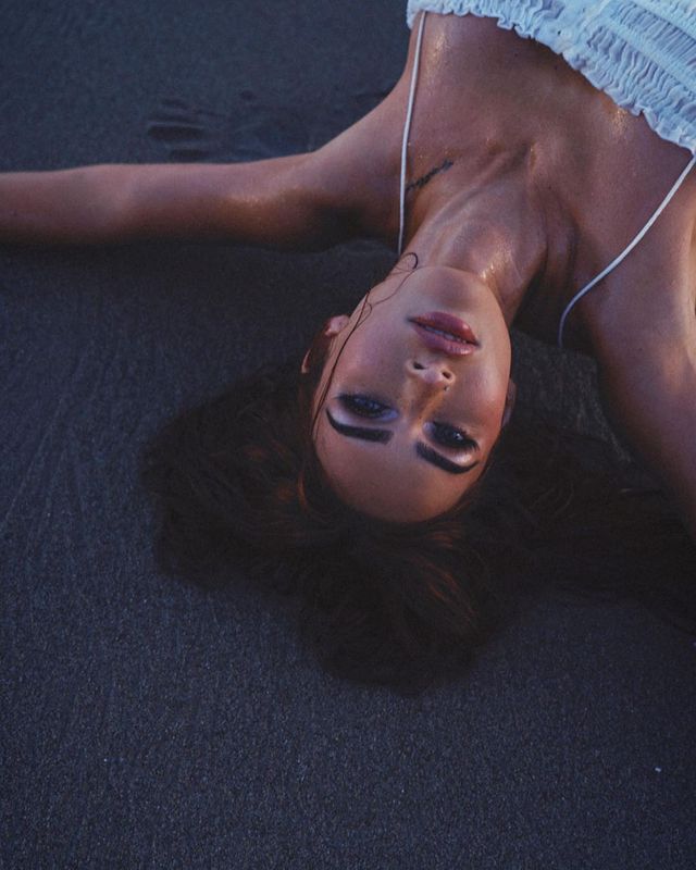 - Deniz kenarında beyaz şeffaf elbisesiyle iddialı pozlarını yayınladı.