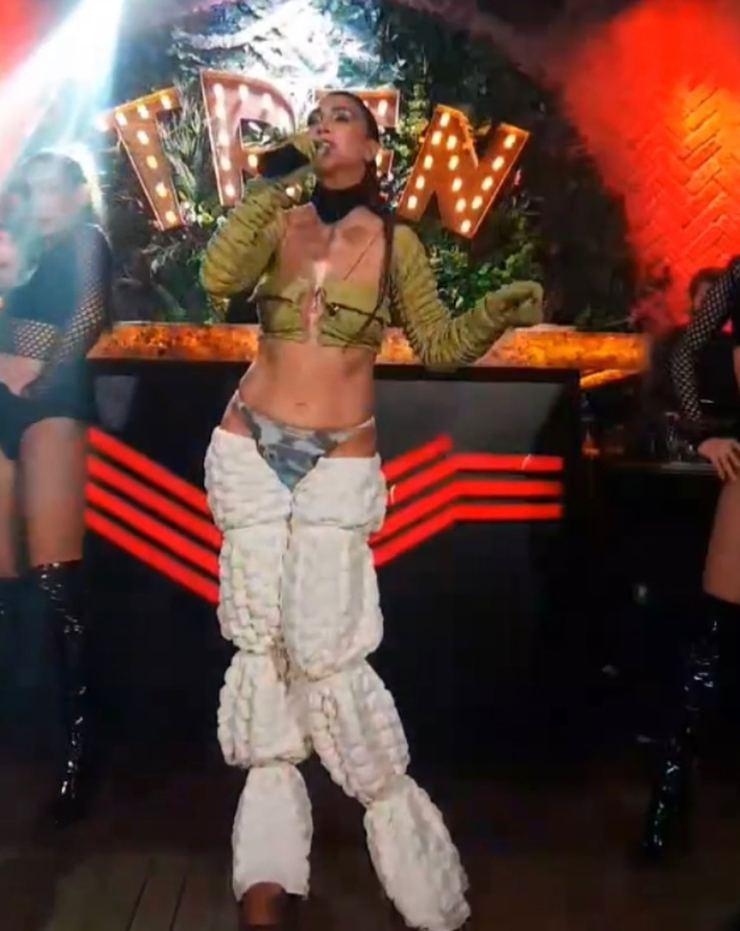 - Sevilen şarkılarını seslendiren ünlü sanatçının tarzı da büyük ilgi gördü. İç çamaşırı detaylı bir pantolon ve göğüs dekolteli bir bluz tercih eden Hande Yener’in kostümü sosyal medyayı salladı.