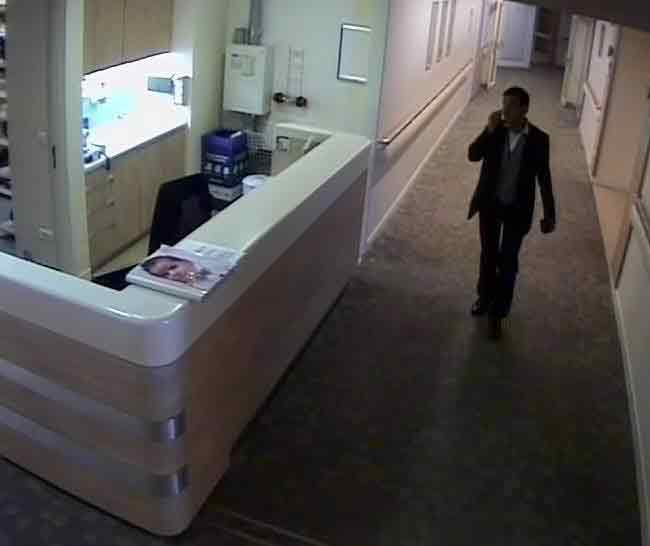 - Ardından hastaneyi kontrol eden şüpheli, çalışanların odasına girip eşyaları alıyor. Daha sonra hiçbir şey olmamış gibi cep telefonu ile konuşarak hastaneden ayrılıyor.