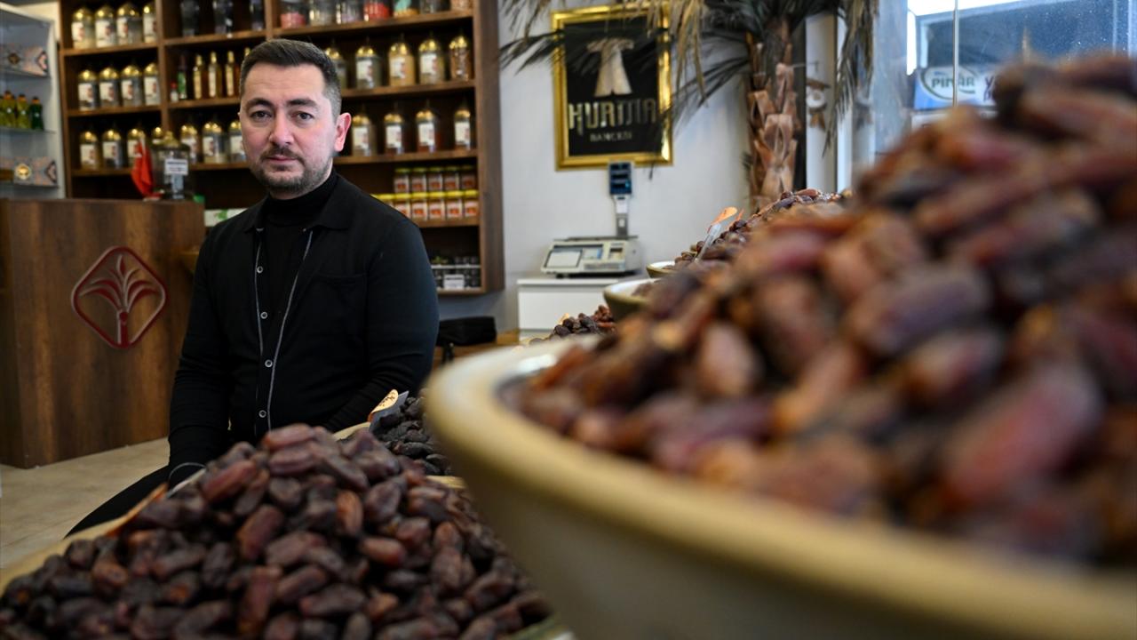 - Ramazan ayının başlamasına sayılı günler kala iftar ve sahur sofralarının vazgeçilmezi hurma, tezgah ve raflardaki yerini aldı.