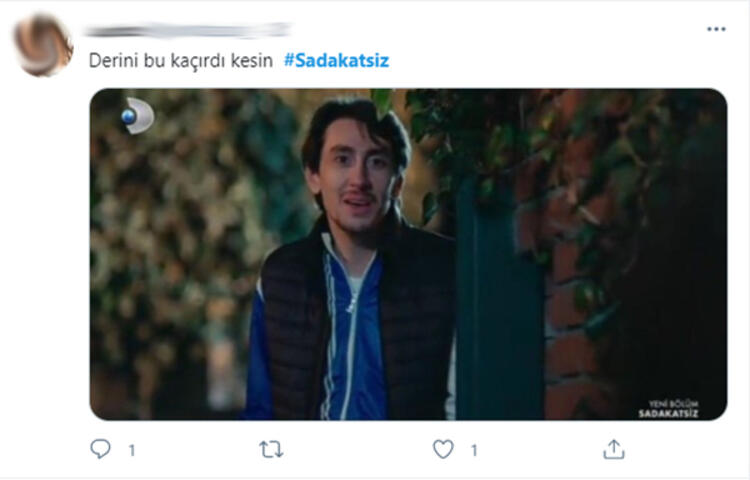 - Başrollerini Cansu Dere, Caner Cindoruk ve Melis Sezen’in paylaştığı ‘Sadakatsiz’ dizisi bu akşam 24. bölümüyle ekranlara geldi. Geçtiğimiz hafta Volkan’ın kendisinden boşanmak istediğini duyduktan sonra adeta çılgına dönen Derin, Asya’nın evine giden Volkan’dan yardım istedikten sonra sırra kadem bastı.