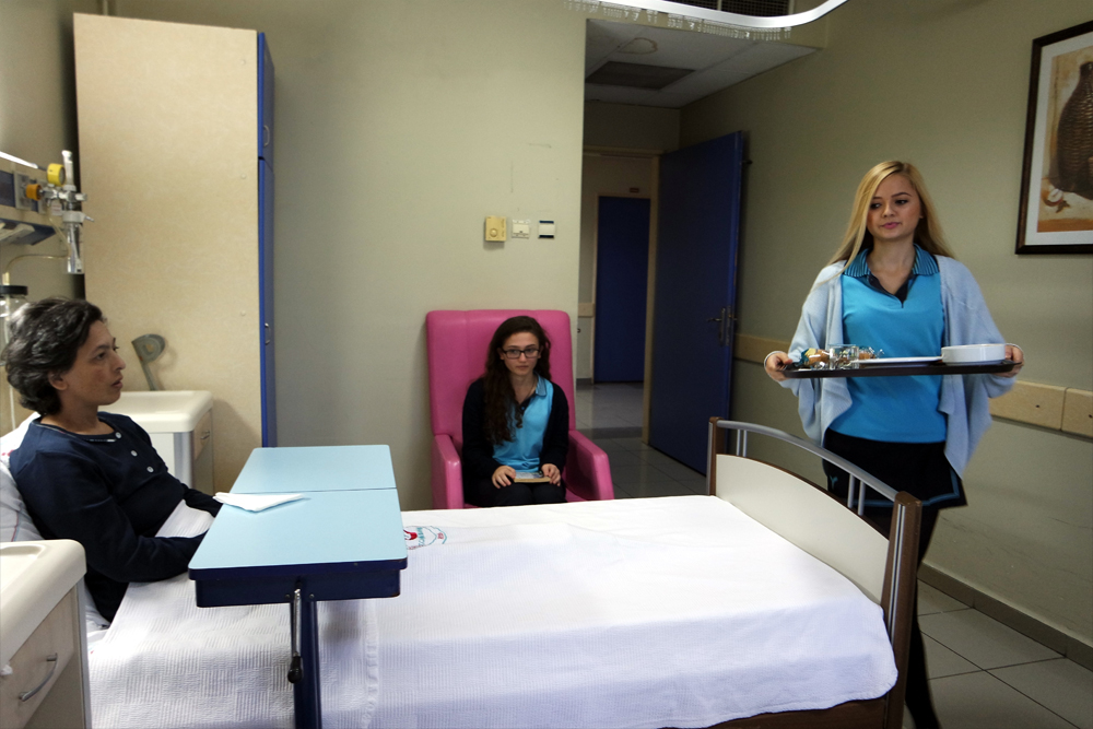Bursa’da üç lisenin desteğiyle uygulanmaya başlanan proje kapsamında haftada üç gün hastaneye giden lise öğrencileri, refakatçisi olmayan hastaları karşılayıp onları ilgili bölümlere yönlendiriyor, yatan hasta servislerinde kitap okuyarak sağlıklı birey o