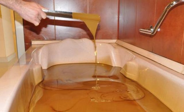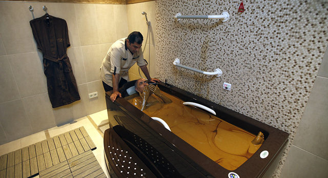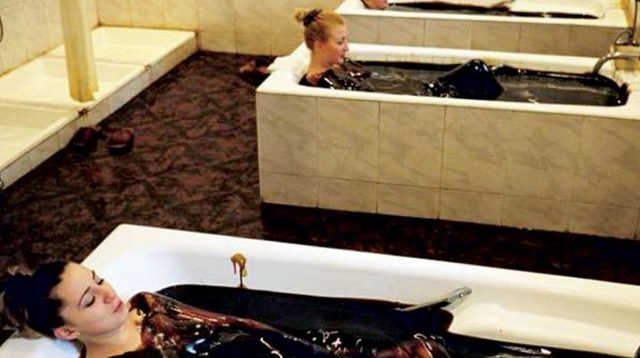 - Kaplıcalardaki hastalar her gün 10 dakikalık naftalan yağı banyosu yapıyor. Naftalan yağı, kan dolaşımını hızlandırıyor ve çok sayıda kronik hastalığa çare oluyor.