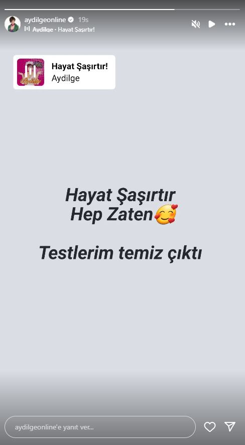 - Instagram hesabından paylaşım yapan Aydilge, “Hayat şaşırtır hep zaten. Testlerim temiz çıktı” paylaşımında bulundu.