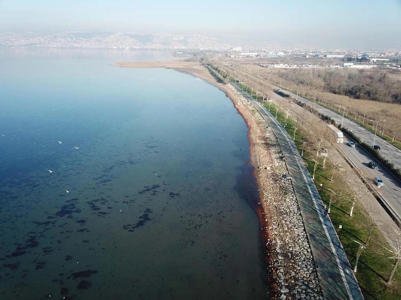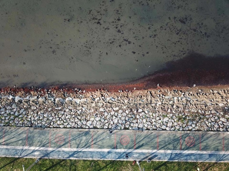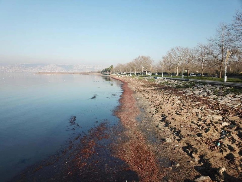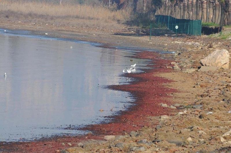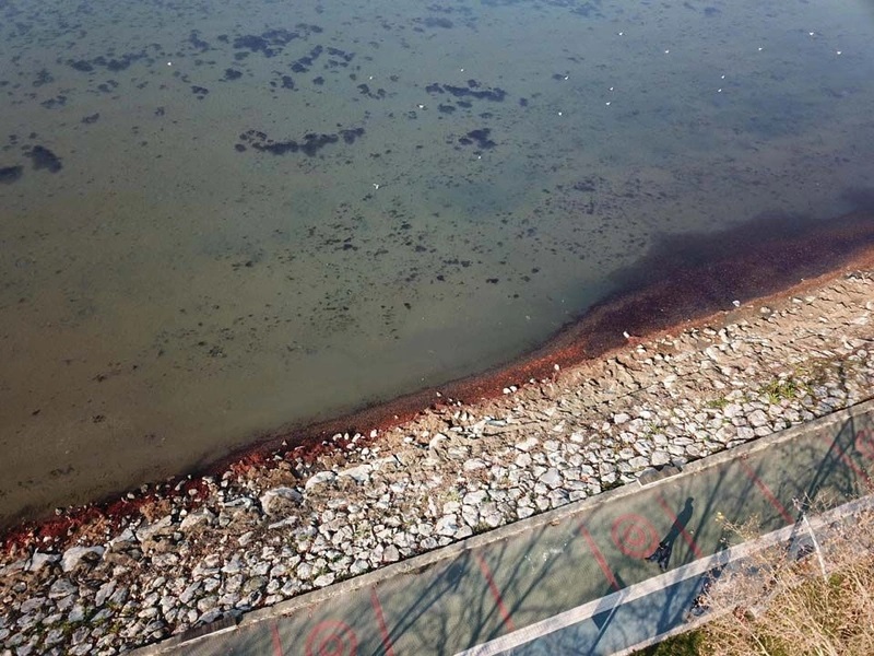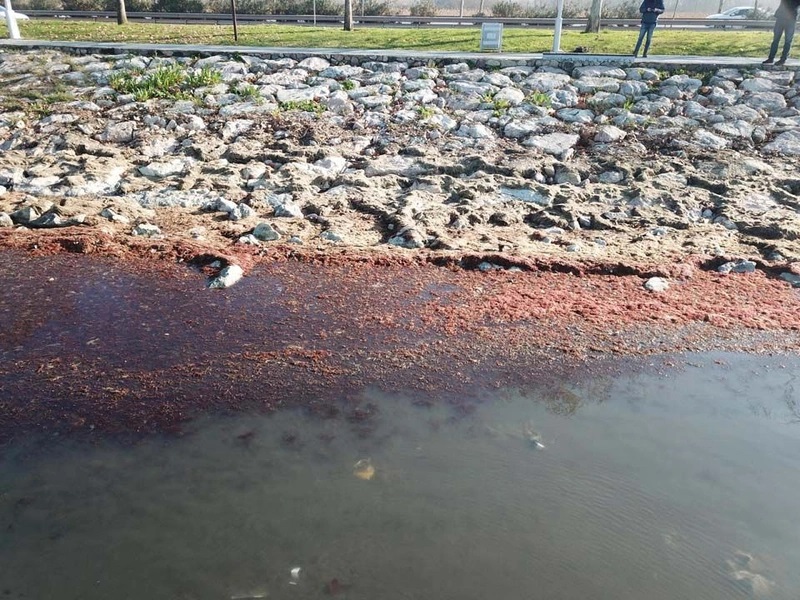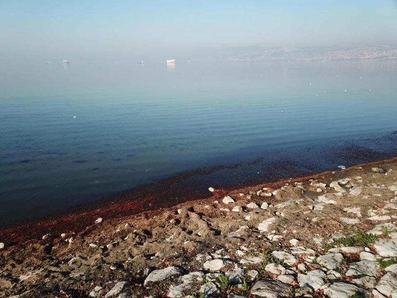 - İzmit Körfezi’nde sahil şeridinin bir bölümü kırmızı renkteki yosunlarla kaplandı.