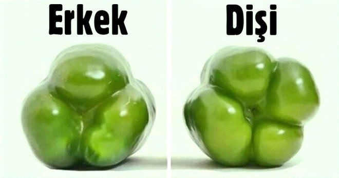 Dolmalık biber alırken, biberin altına bakın. 3 yumru görürseniz, erkek biber demektir. 4 yumru görürseniz, dişi biber demektir. Dişi biberler daha tatlıdır ve onları taze iken kullanmak daha iyidir. Erkek biberler daha serttir ve daha lezzetlilerdir. Dolayısıyla farklı yemekler için kullanımı daha uygundur.