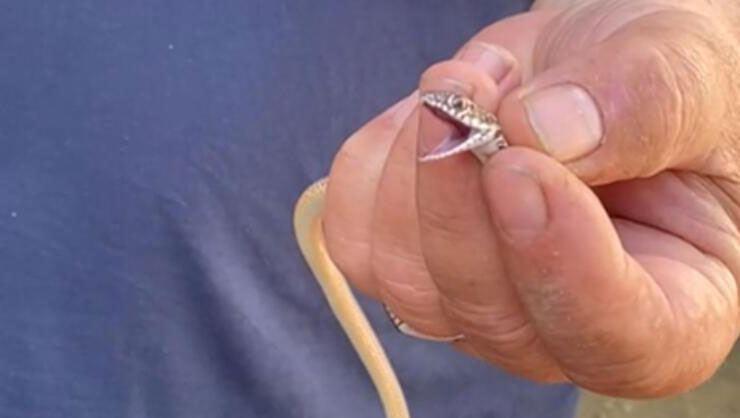 - ÇAY İÇMEYE ÇIKTI, YILANLA KARŞILAŞTI… Olay Çanakkale’nin Biga ilçesi Balıklıçeşme Köyü’nde yaşandı. Bahçeye çay içmeye çıkan Sebahat Erol bir ses duydu. Torunlarına ait bisikletlerin yanında bir yılan olduğunu fark eden Erol, hemen eşi Halil Erol’u çağırdı. Bahçede çay içtiği sırada yılanı gördüğünü anlatan Sebahat Erol, “Bahçede oturdum çay içiyordum. Bir baktım yılan. Hemen eşimi çağırdım. Henüz yavruydu. Eşim yılanı yakaladı.” dedi. O anlar ise cep telefonu kamerasına böyle yansıdı.