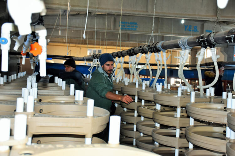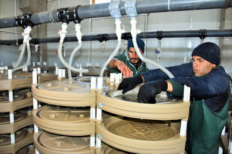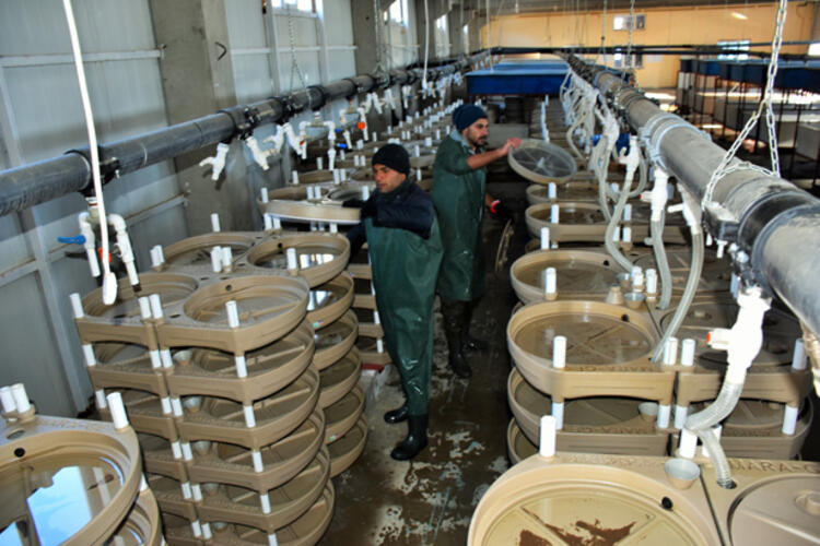 - Sağımın ardından elde edilen yumurtalar, işlendikten sonra kuluçka makinelerine yerleştirilerek 45 gün bekletiliyor. Elde edilen yavrular küçük havuzlara alınarak yetiştiriliyor.
