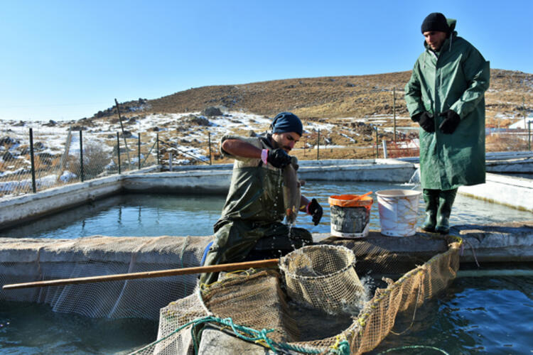 - Elde ettiğimiz yumurtaları döllenmesi için yarım saat bekletiyoruz. Daha sonra kuluçka makinalarına koyarak ortalama 10 derecede 45 gün bekletiyoruz. Yumurtadan çıkan balıkları büyütmek için küçük havuzlarda besliyoruz.” (AA)