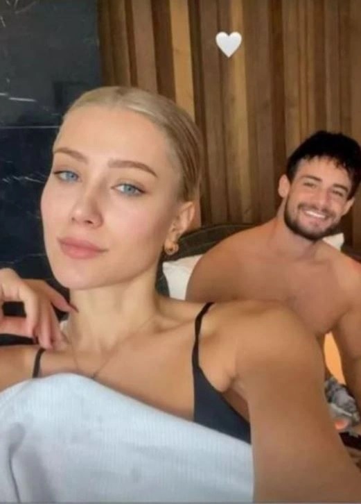 - Karacakaya, sevgilisiyle yatakta aşk dolu poz verdi.