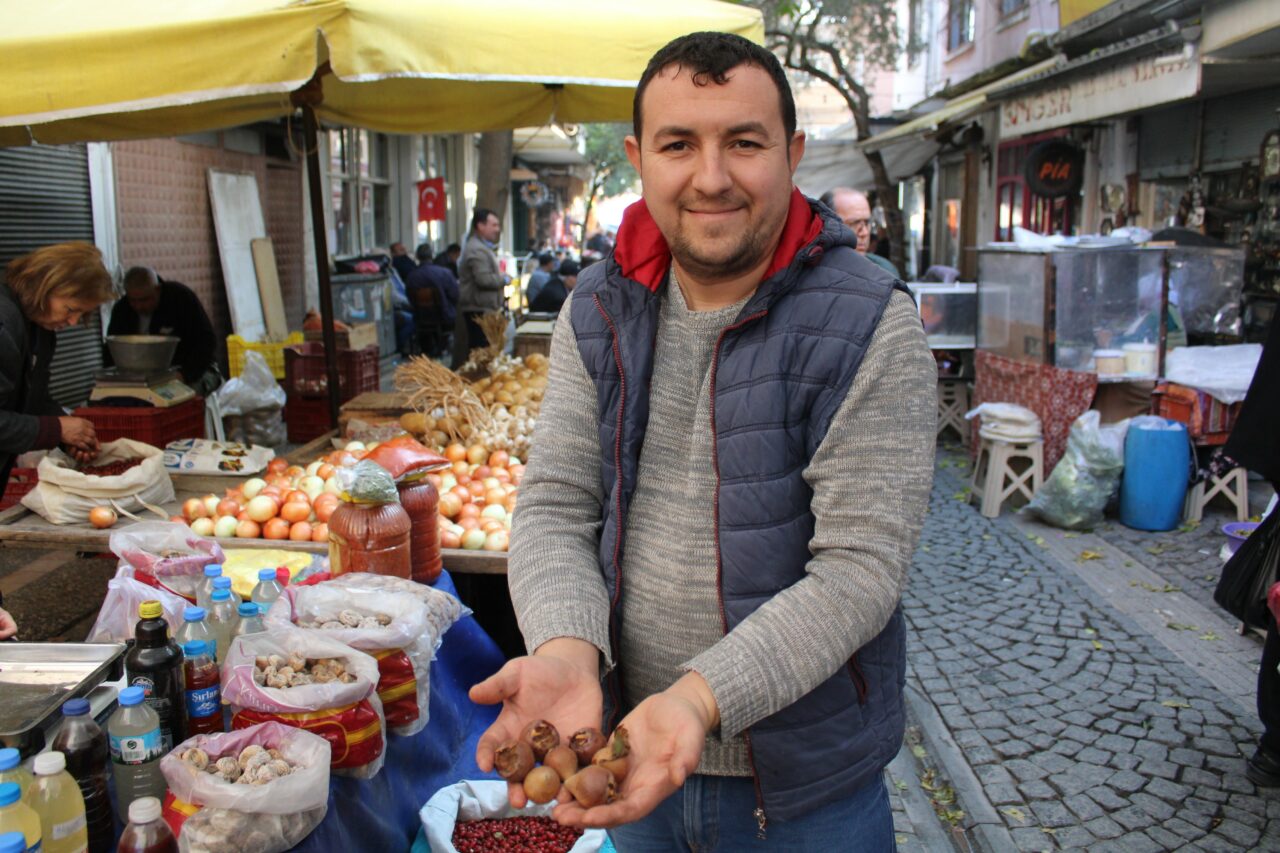 - Kahverengi görünümü ve yumuşak yapısıyla dikkat çeken muşmulanın tam bir şifa deposu olduğunu ifade eden pazarcı esnafı Hasan Hüseyin Korkmaz; “Muşmulalarımız Atça’nın Uzunlar köyünden geliyor. Bol şifalı bir meyve, çekirdeklerini yutabiliyorsun. Çekirdekleri zarar vermiyor.