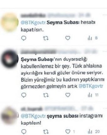 - Binlerce vatandaş, Şeyma’yı Bilgi Teknolojileri ve İletişim Kurumu’na (BTK) şikayet etti.