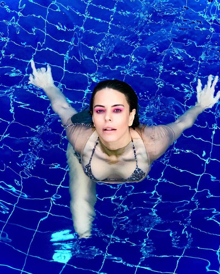Şarkıcı Simge, havuzda verdiği bikinili pozlarıyla dikkatleri üzerine çekti.