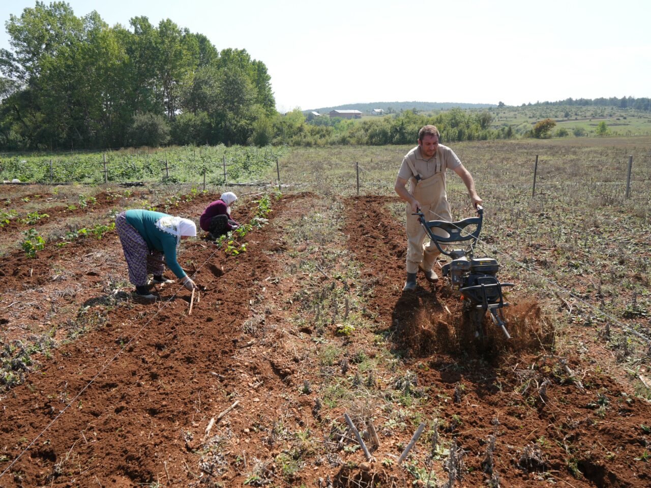 - “Yurt dışından getirmiş olduğumuz fidanları şu anda toprakla buluşturuyoruz” 2 yıl içerisinde 80 ton ürün hasat etmeyi hedeflediklerini söyleyen Kenan Erkan Çevikoğlu, “Atalarımızdan kalan bu topraklarda daha önceden arpa ve buğday üretimi yapılmaktaydı. Pandemi döneminde boş vaktimiz çoktu, araştırdık. Katma değerli ürün olarak çilek ekiminde bulunduk. Daha sonra ahududu ve böğürtlen üretmek için kolları sıvadık. Tarım Bakanımız İbrahim Yumaklı’nın özel izinleriyle, bakanlığın özel izinleriyle yurt dışından getirmiş olduğumuz fidanları şu anda toprakla buluşturuyoruz” dedi.